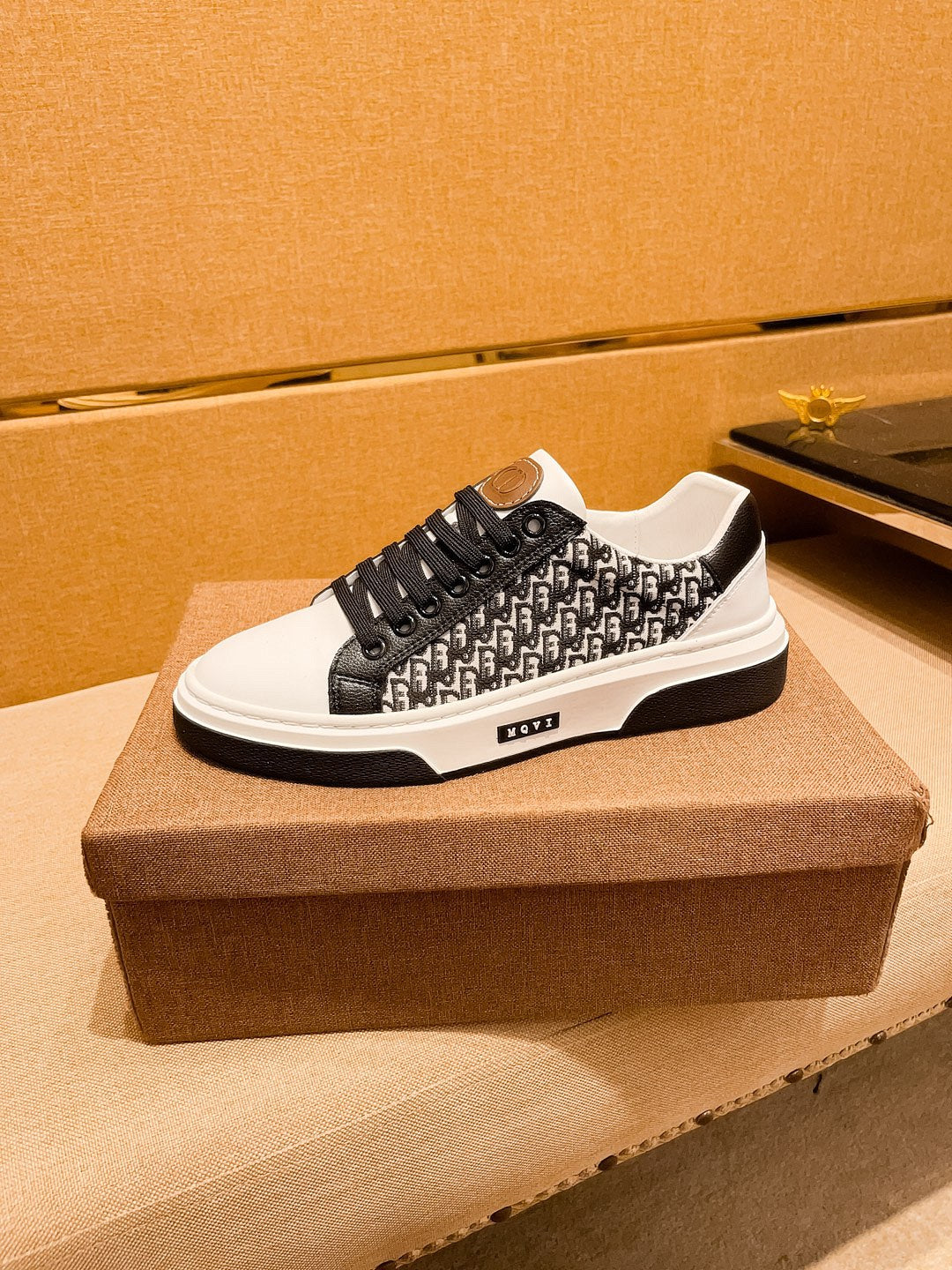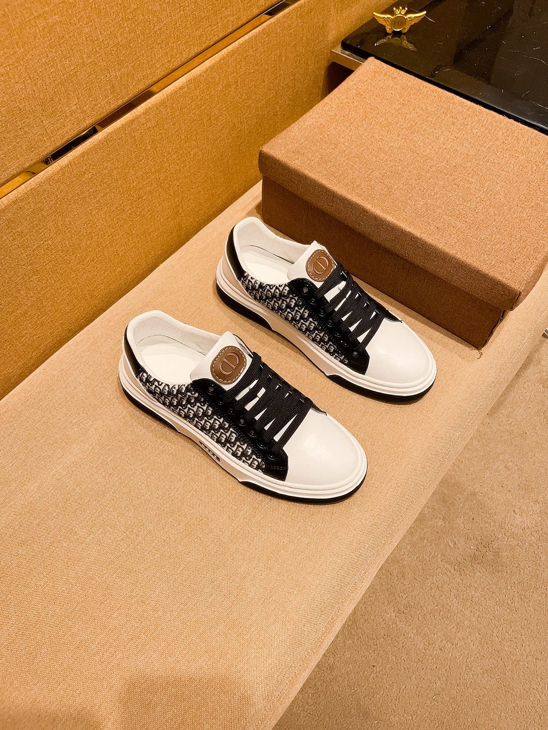 CD LOW TOP SNEAKER WHITE AND BLACK CALFSKIN