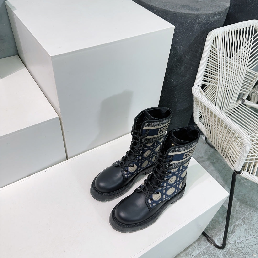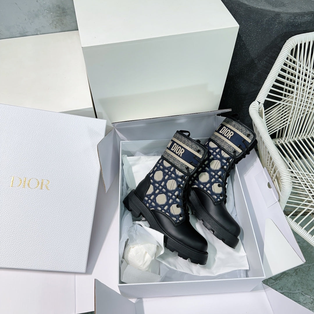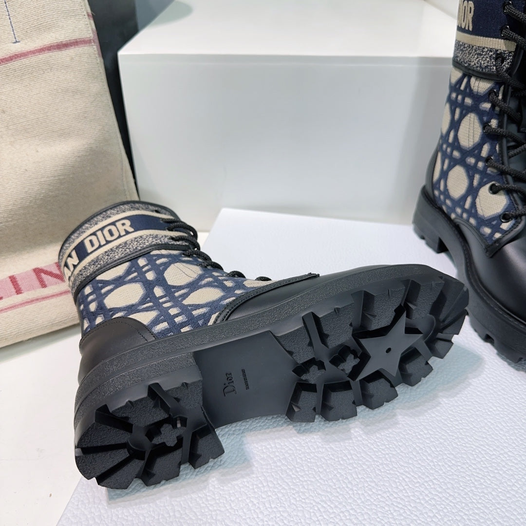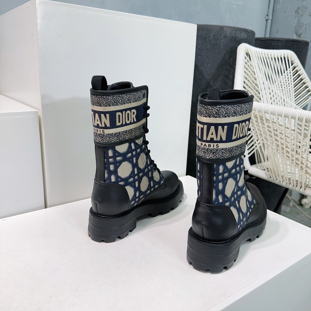 CD Major Ankle Boots Black Navy Blue Calfskin And Fabric Canvas
