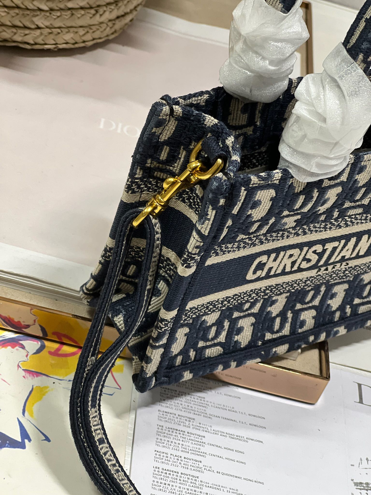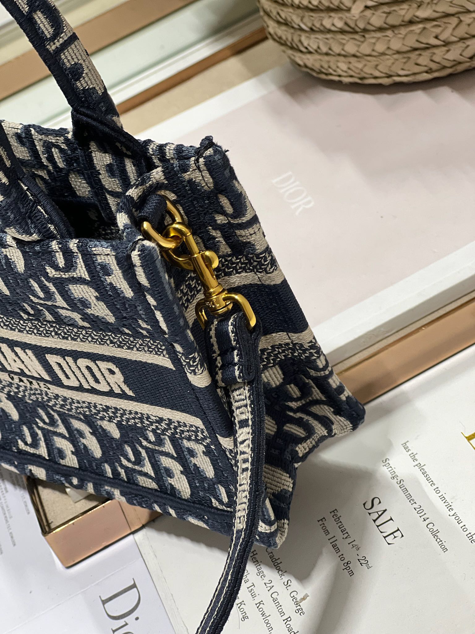 cd mini book tote 21.5 beige blue oblique embroidery calfskin