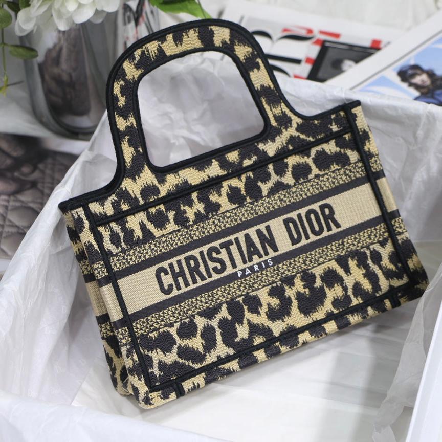cd mini book tote 23cm leopard embroidery canvas