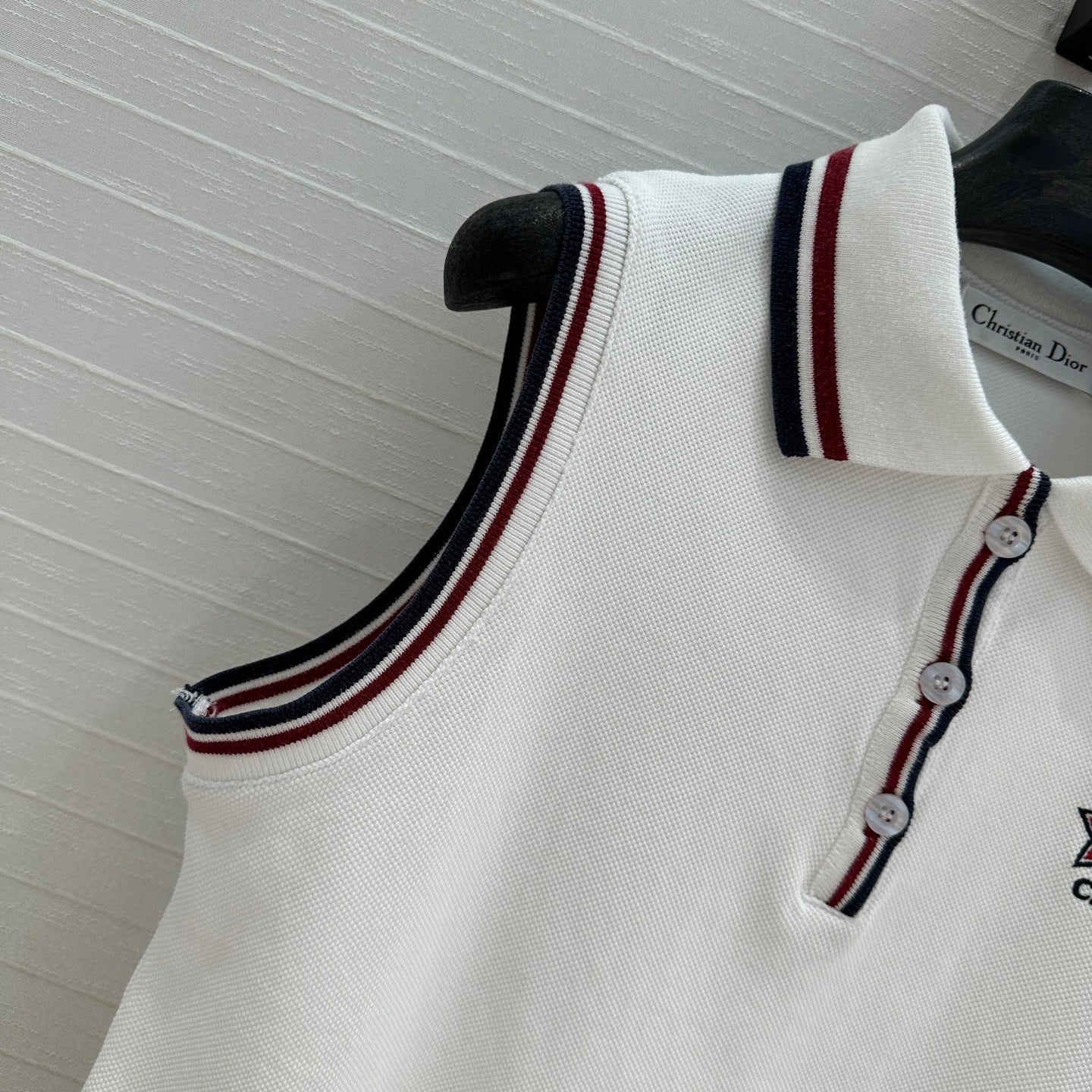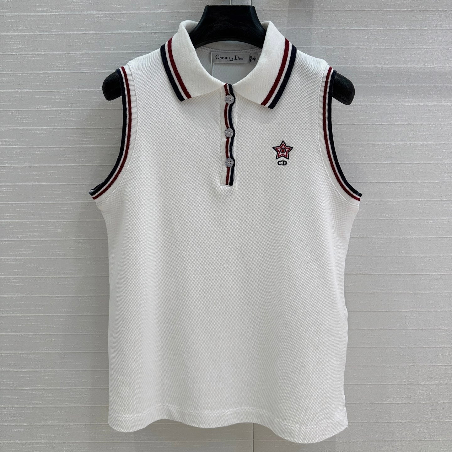 CD Polo Collar Vest Top White Cotton