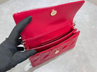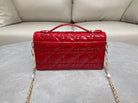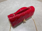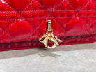 CD Pouch With Chain Cherry Red Patent Cannage Calfskin