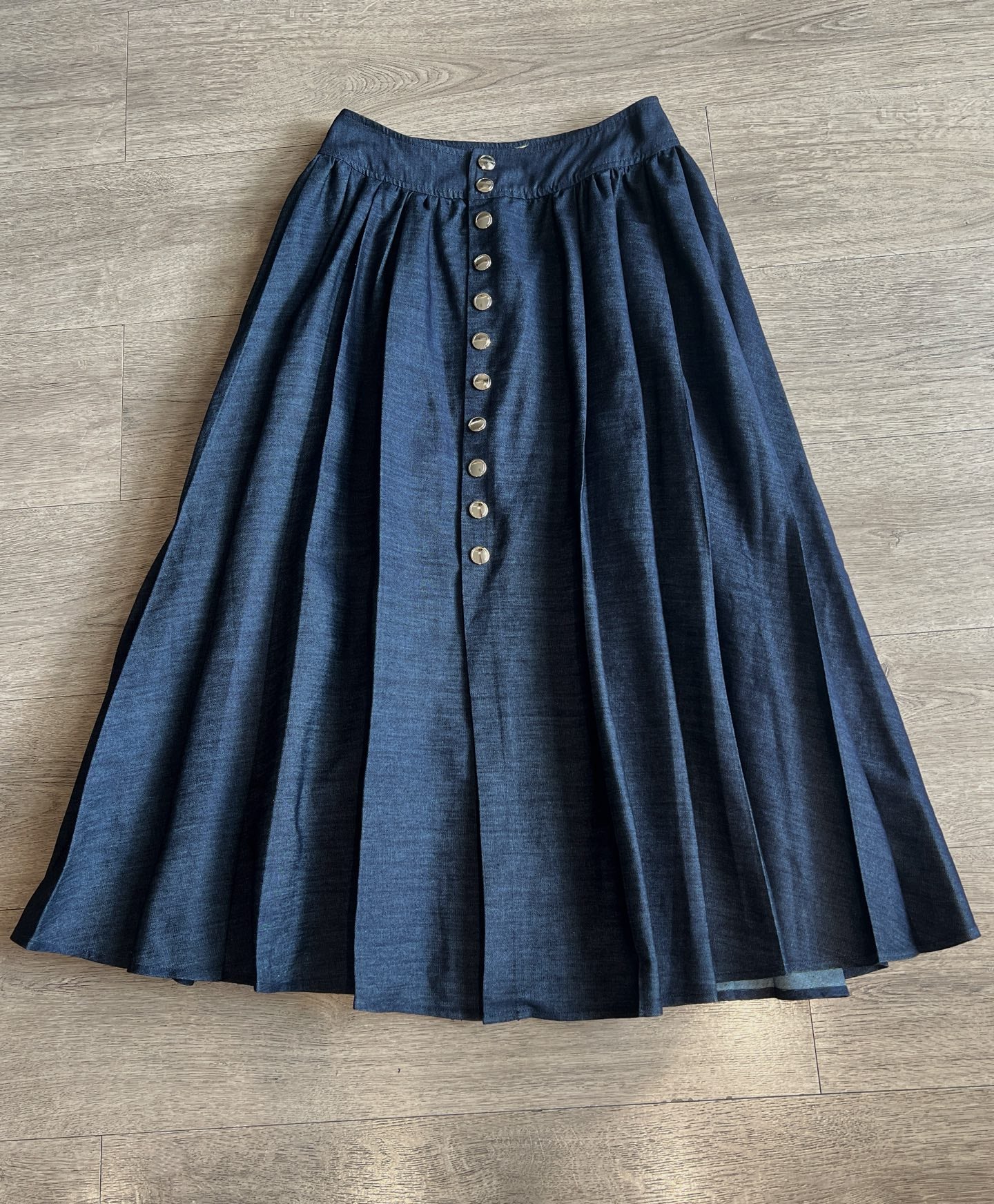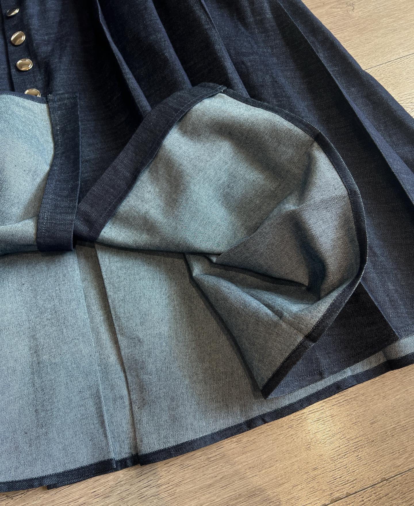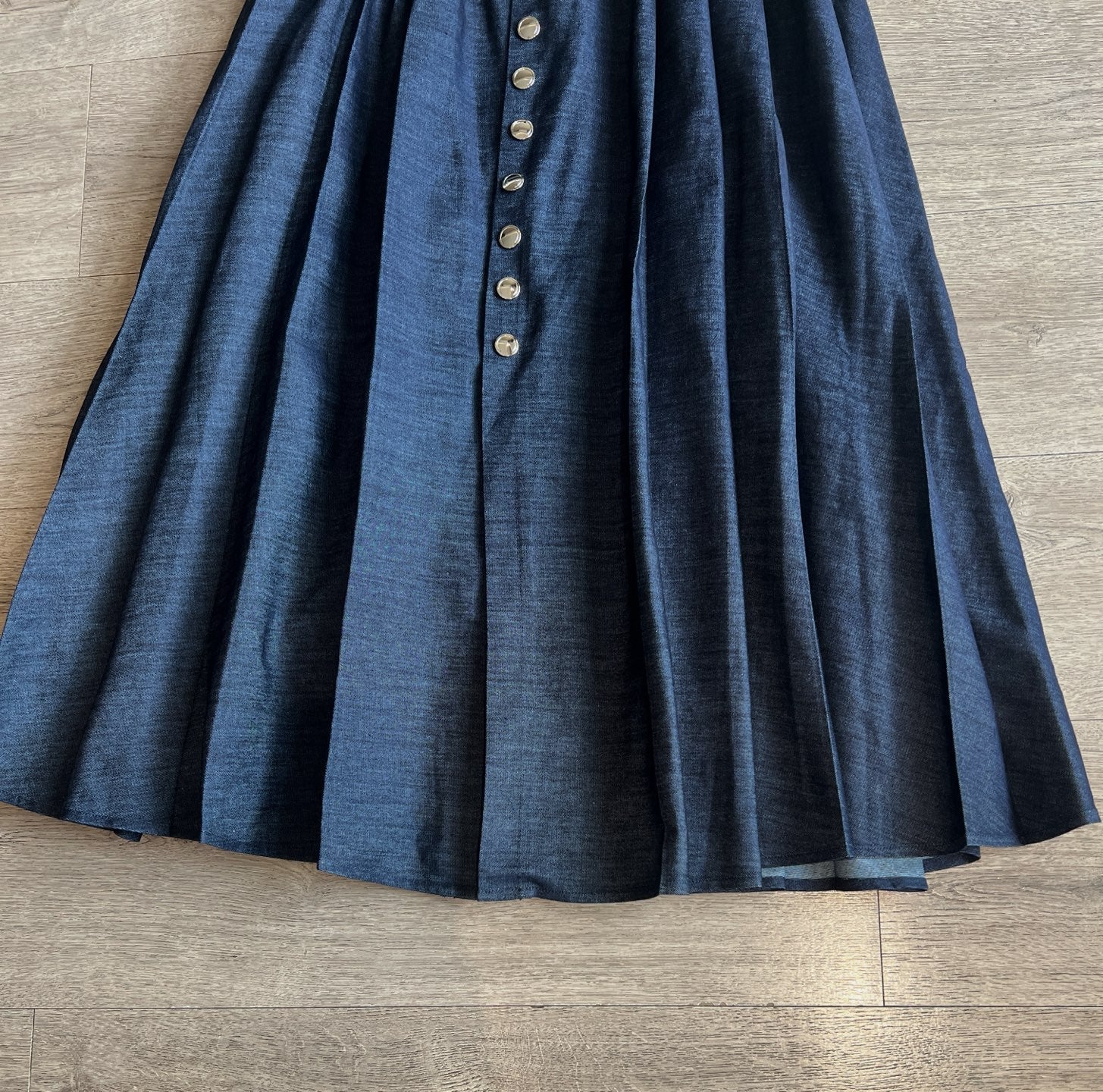 CD Single-breasted Long Umbrella Skirt Blue Cotton