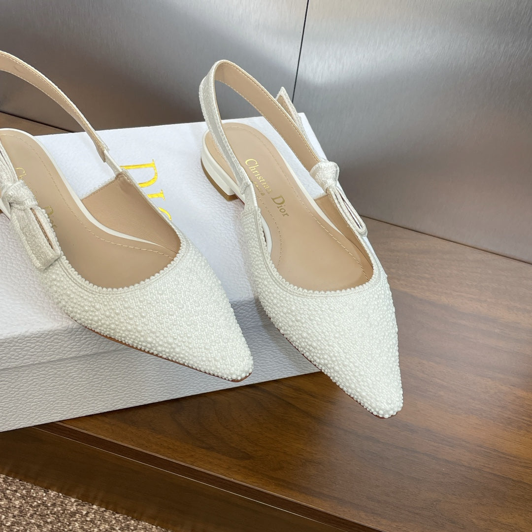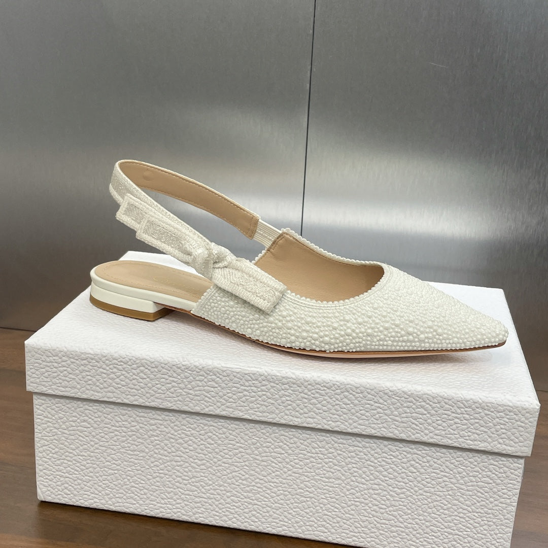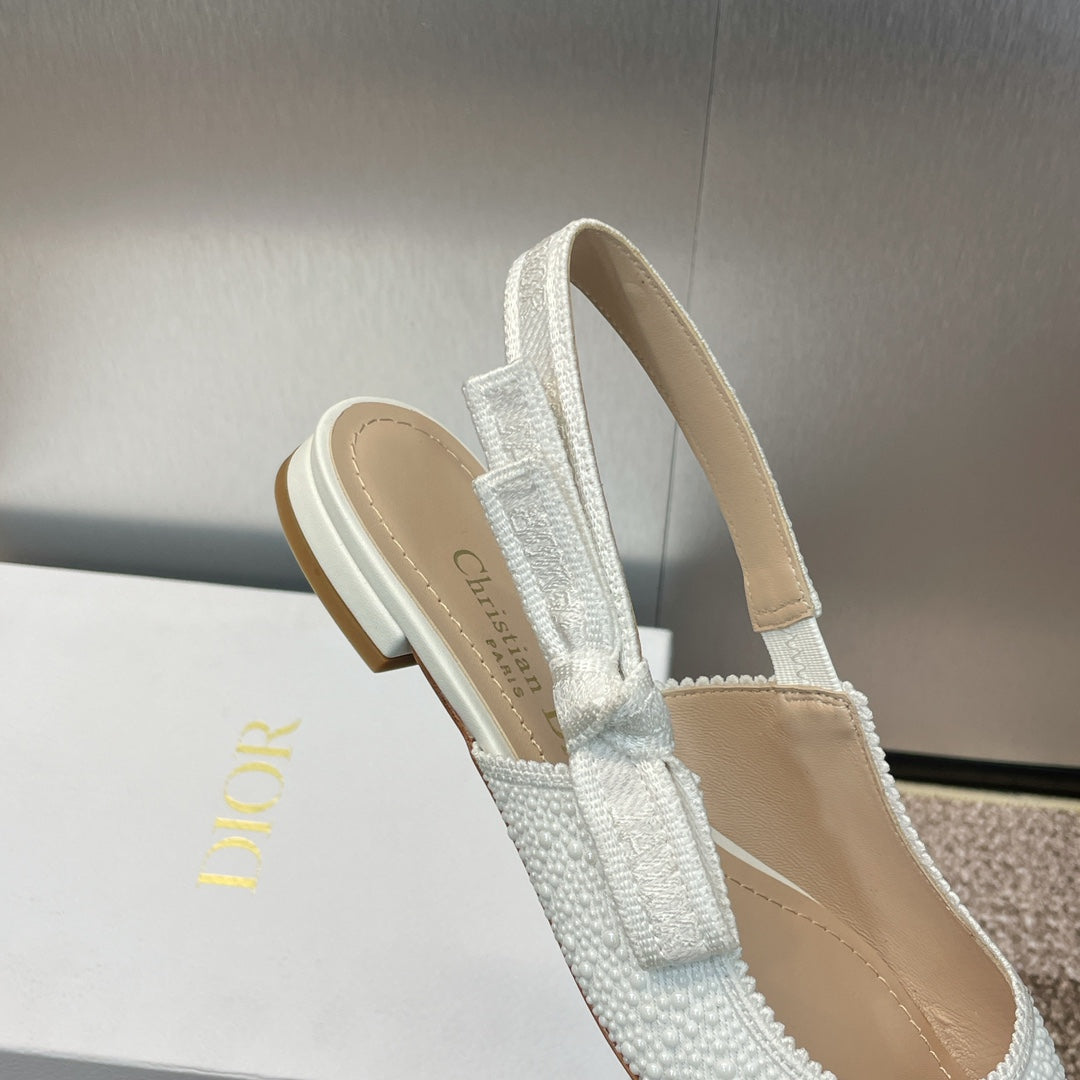 cd slingback flat embroidered cotton white calfskin resin pearl