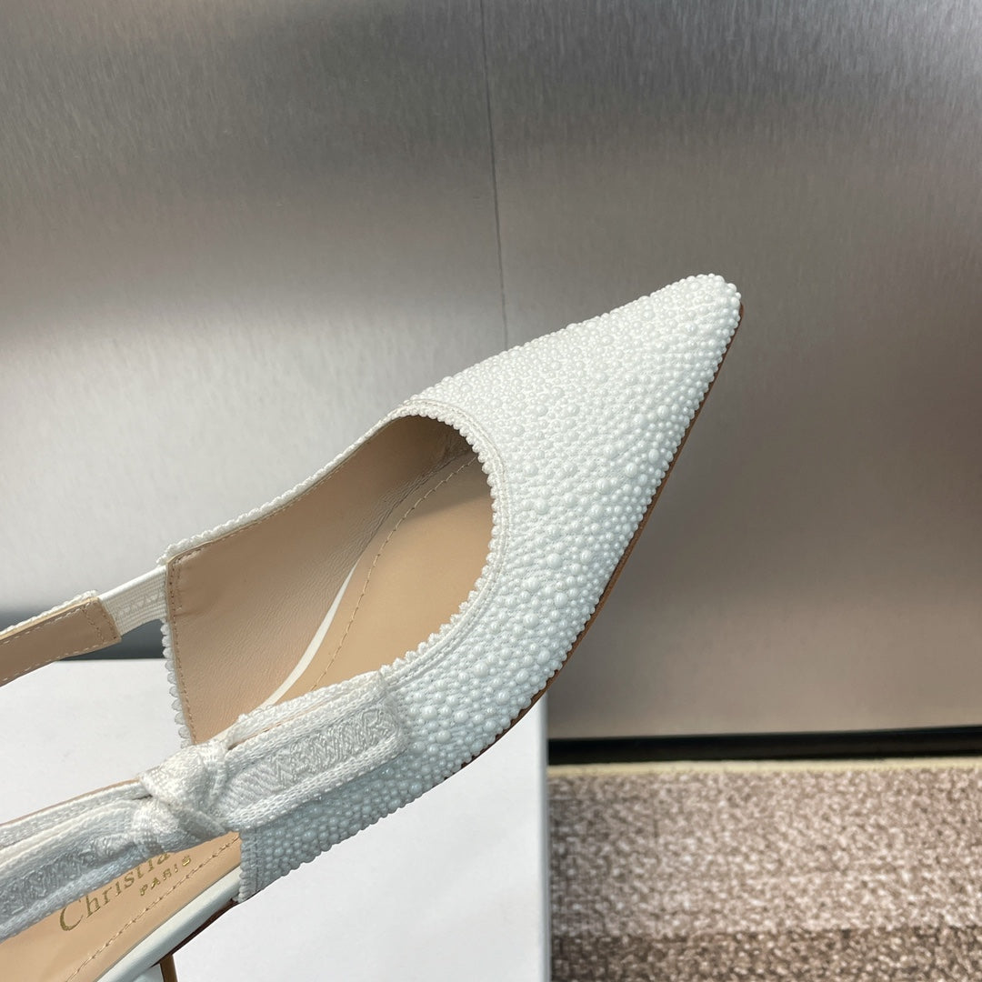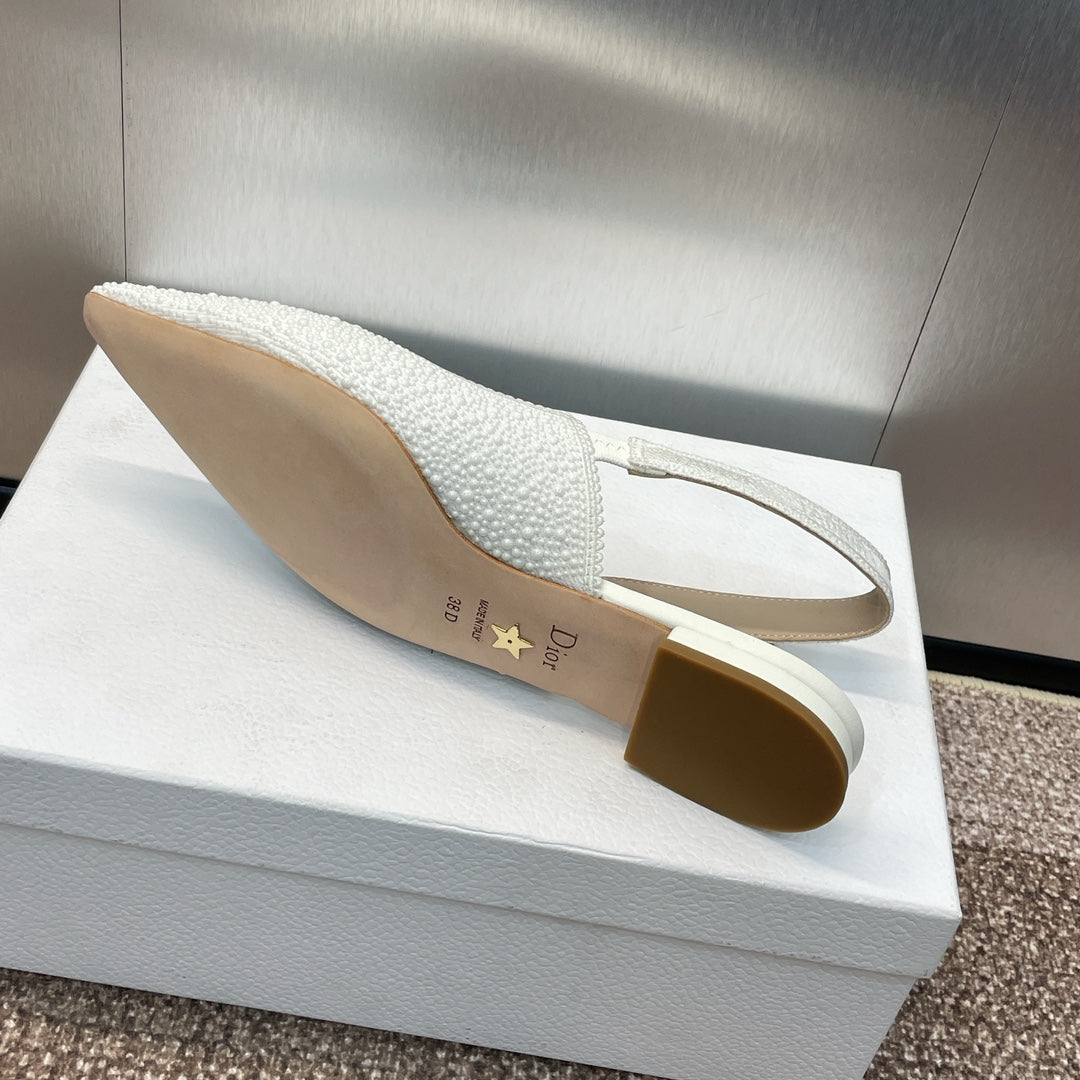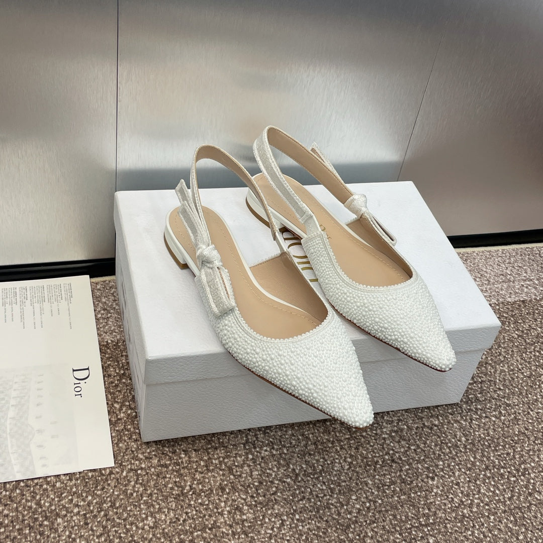 cd slingback flat embroidered cotton white calfskin resin pearl