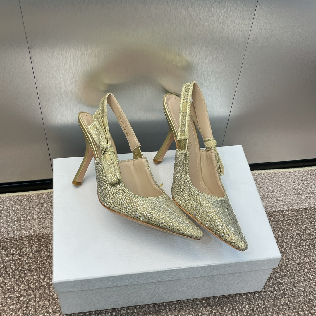 cd slingback pump 95 gold green calfskin resin pearl