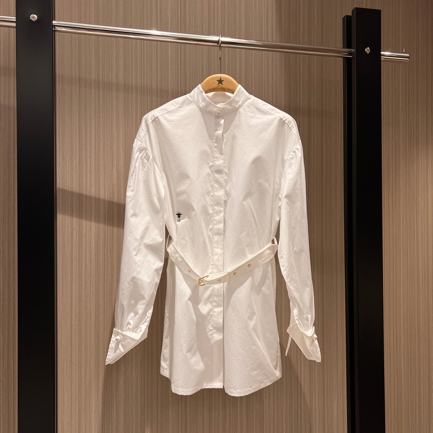 CD Stand-up Collar Long-sleeved Shirt Dress White Cotton