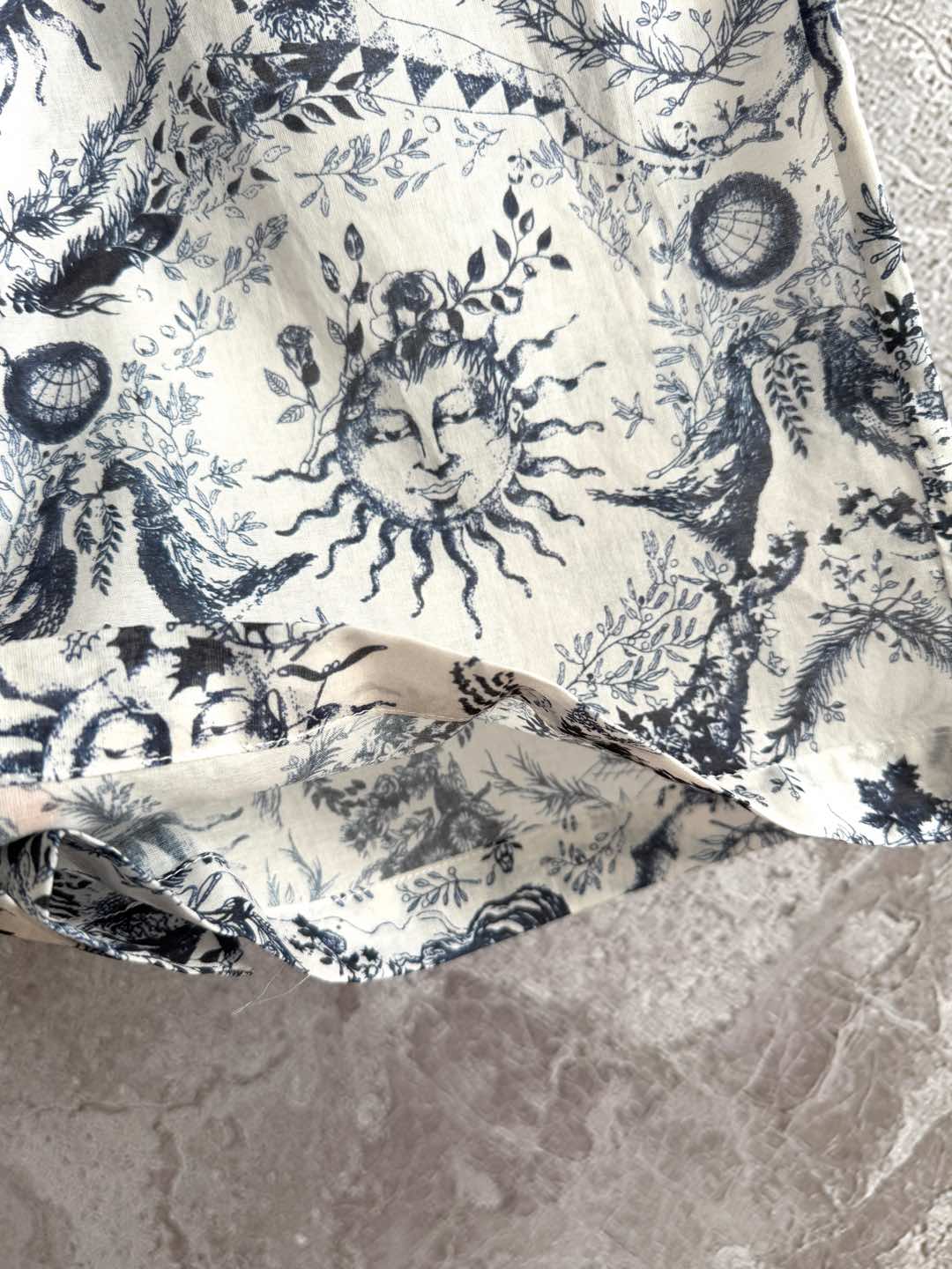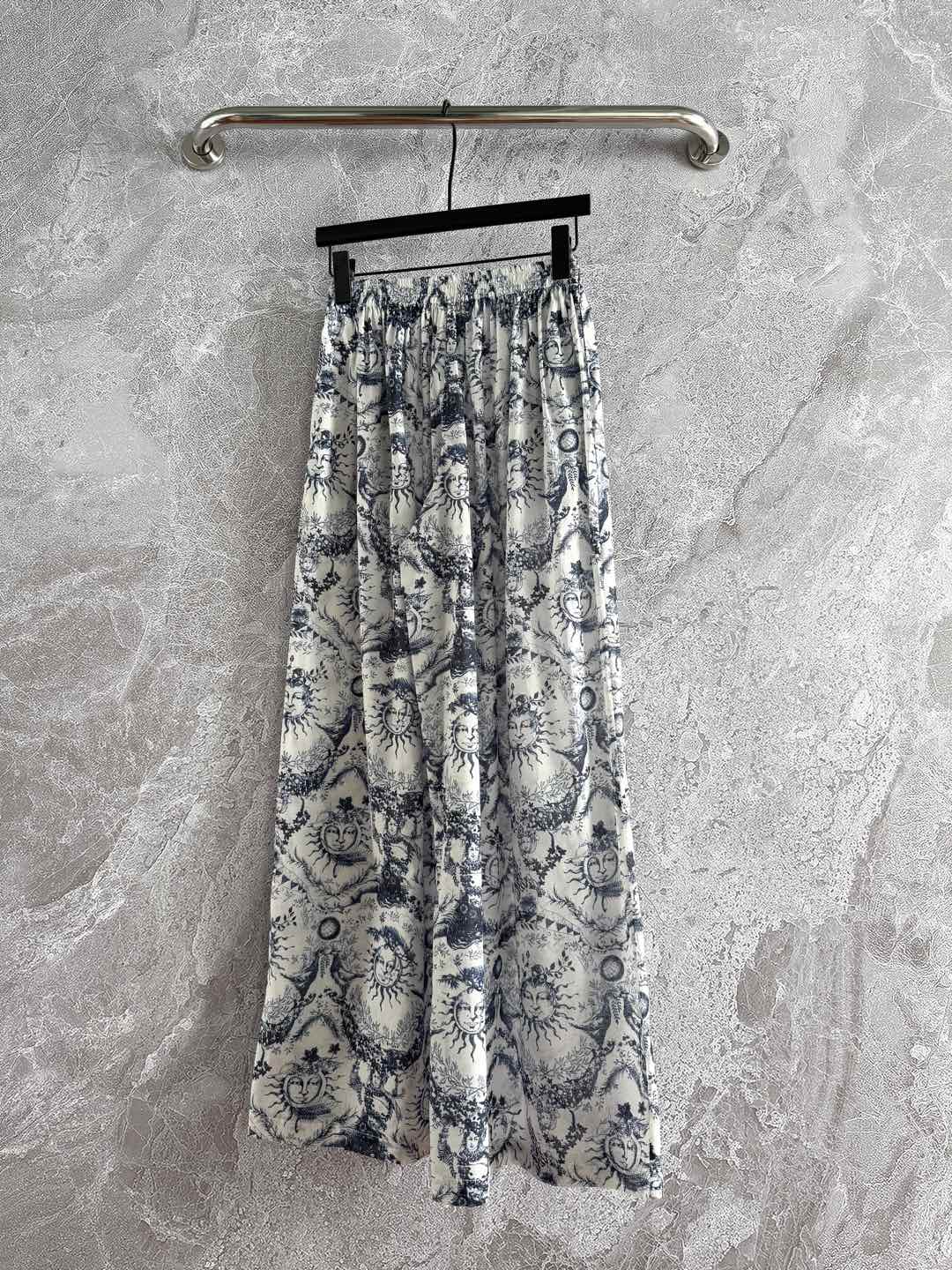 CD Sun God Printed Wide Leg Pants Beige Blue Cotton