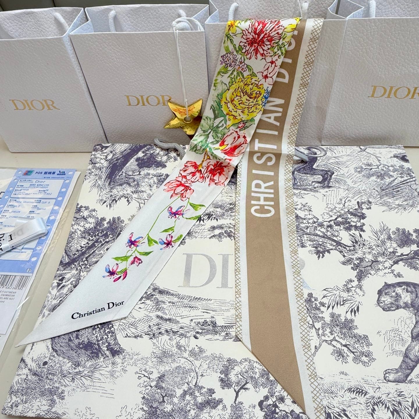 CD Twilly Mini Scarf 100cm Beige Colorful Mulberry Silk 958858
