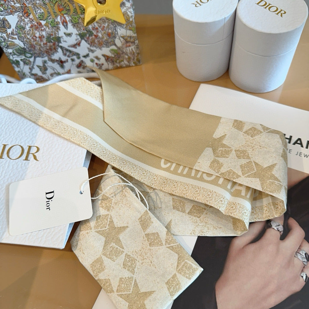 CD Twilly Mini Scarf 100cm Floral Light Beige Mulberry Silk 958864