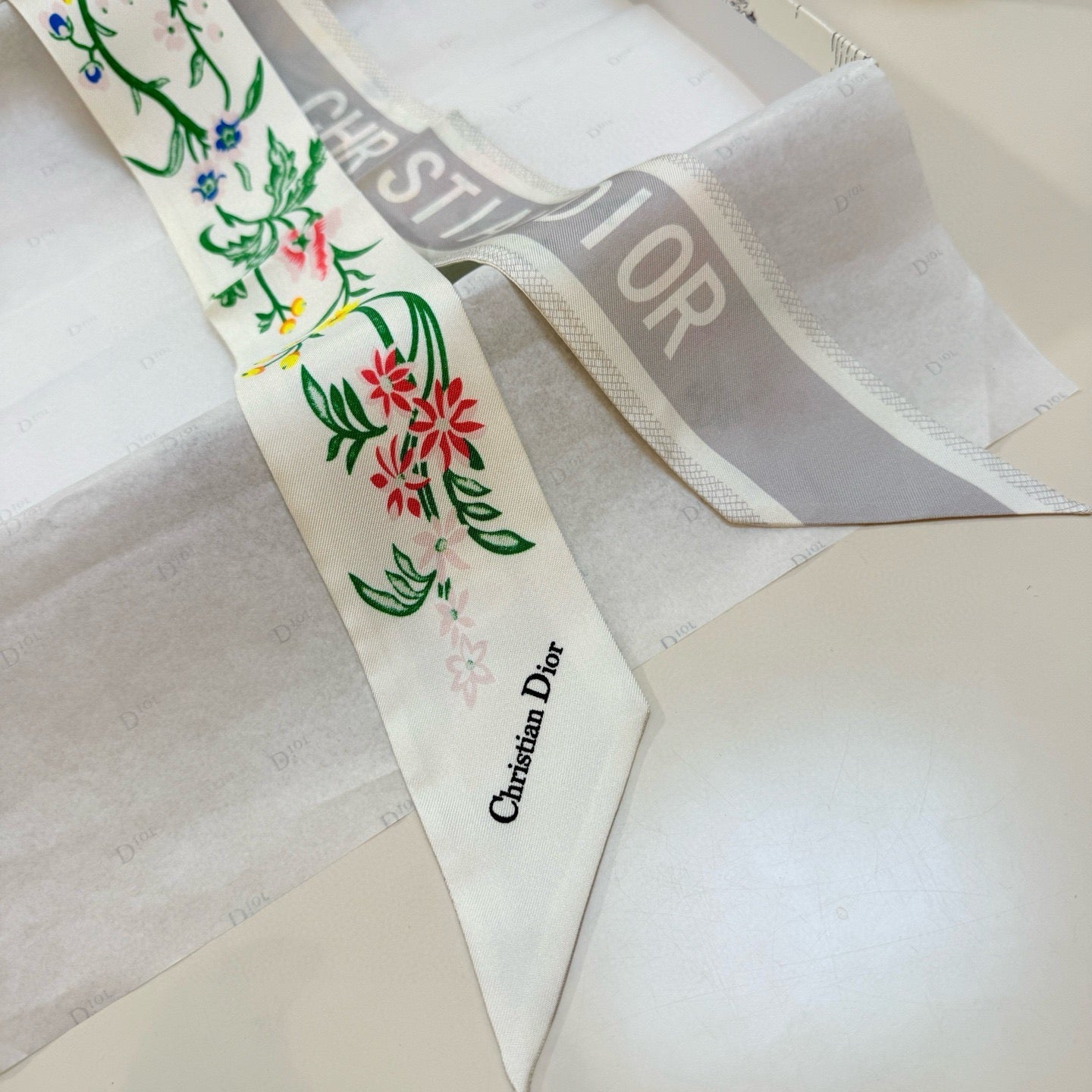 CD Twilly Mini Scarf 100cm White Colorful Mulberry Silk 958860