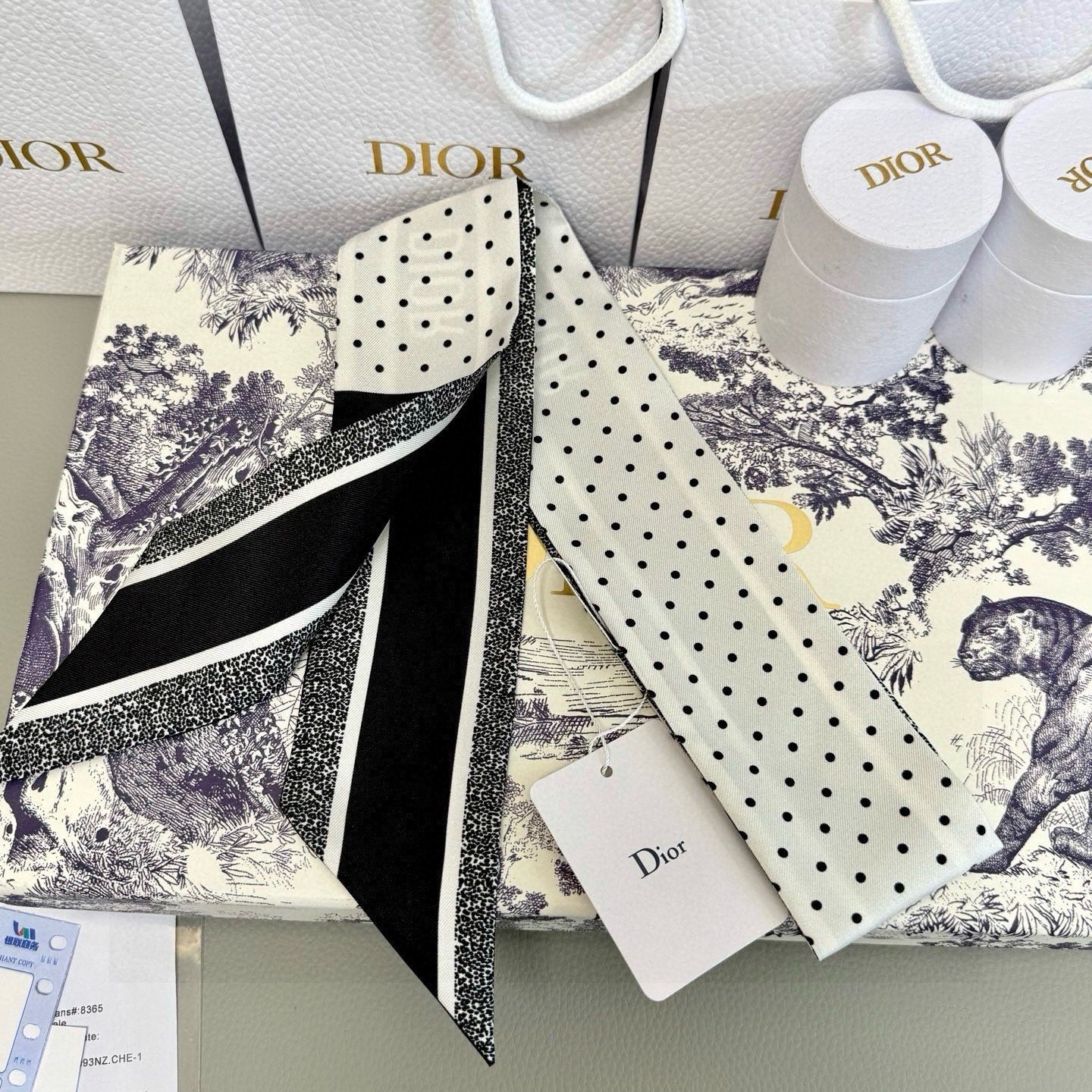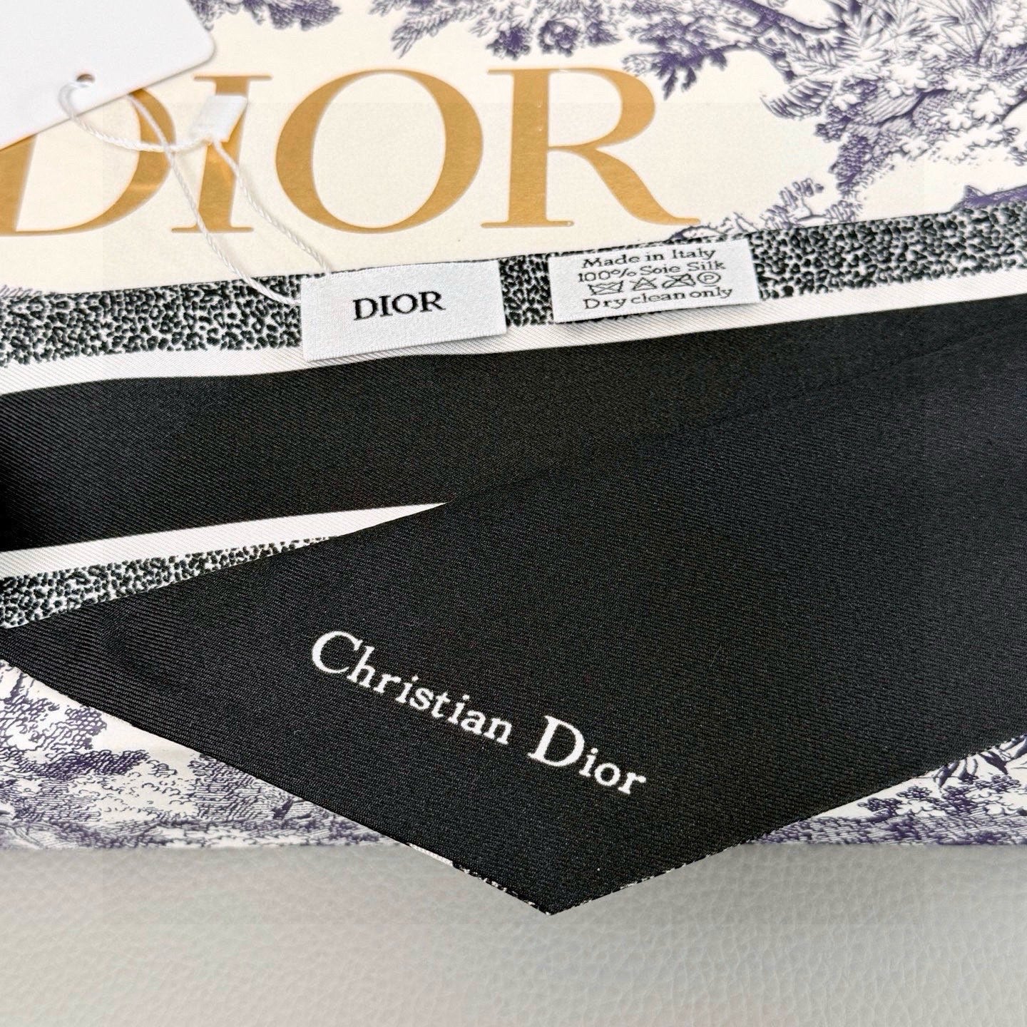 CD Twilly Mini Scarf 105cm Black White Mulberry Silk 957050