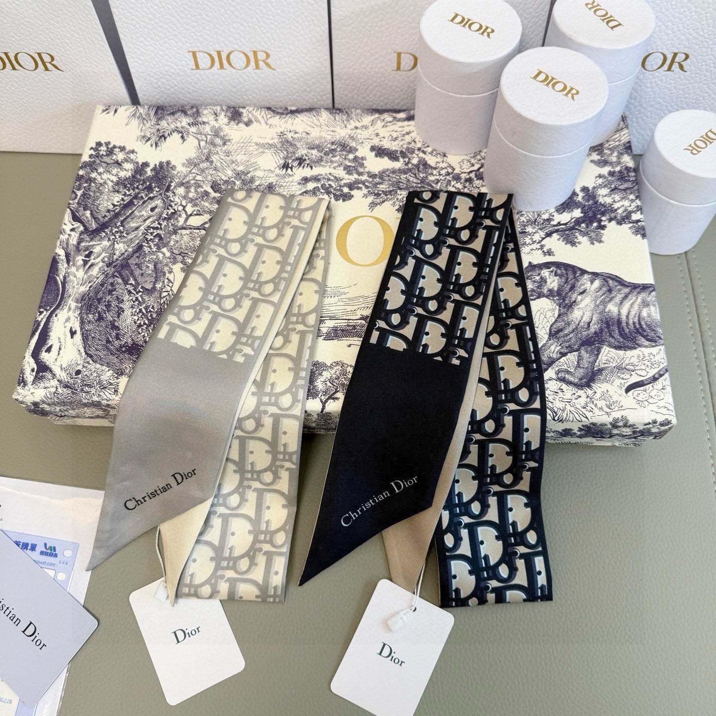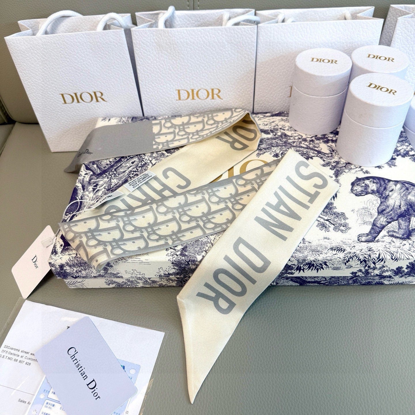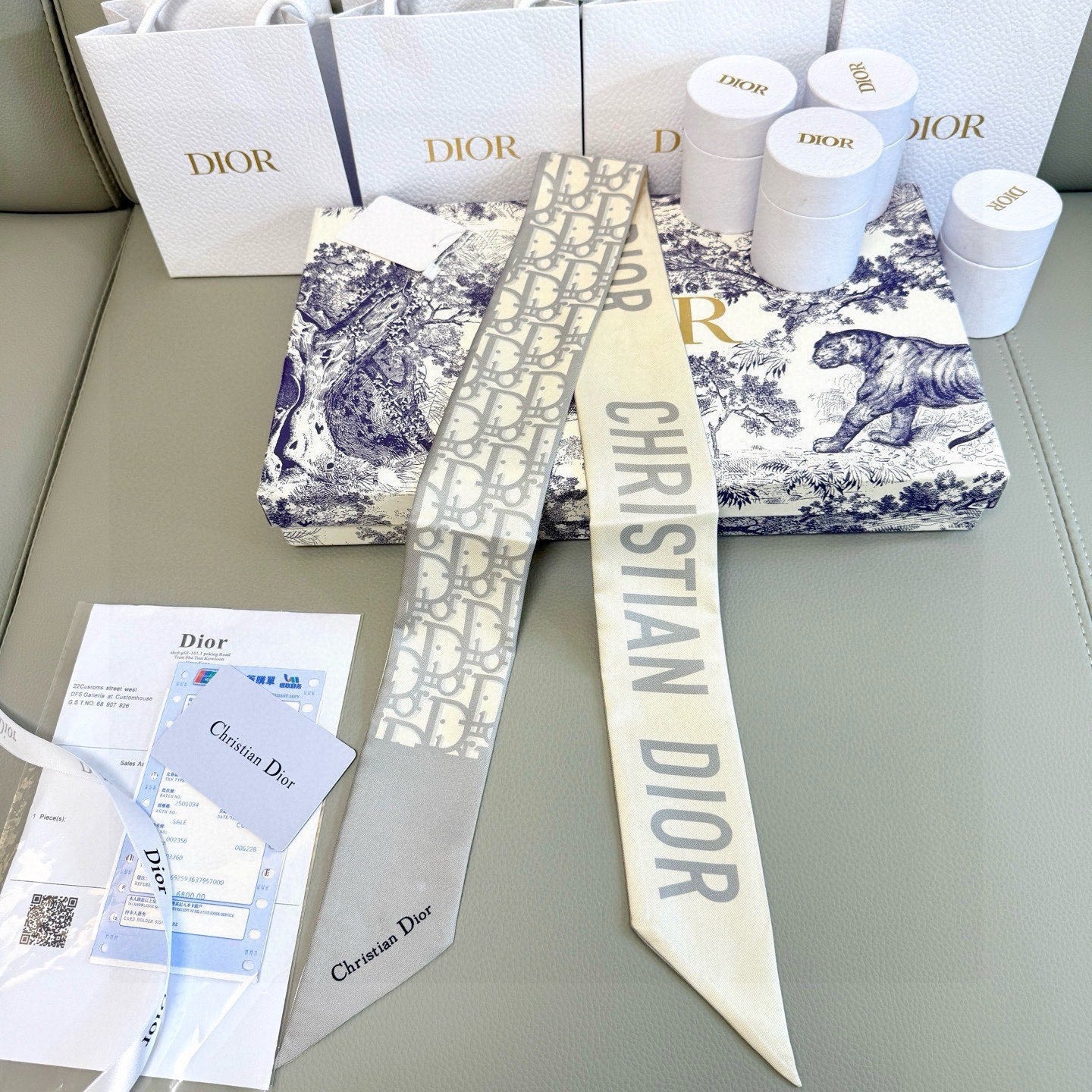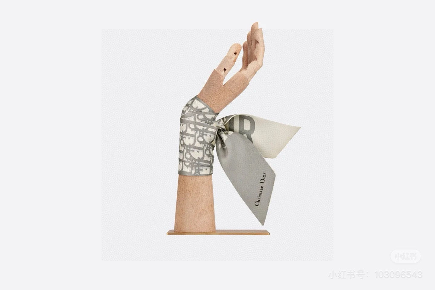 CD Twilly Mini Scarf 105cm Light Gray Mulberry Silk 953239