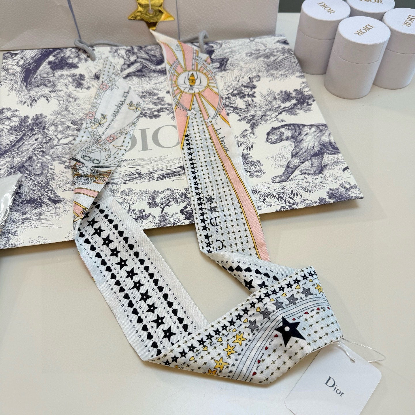CD Twilly Mini Scarf 105cm Tarot Card White Pink Mulberry Silk 928084
