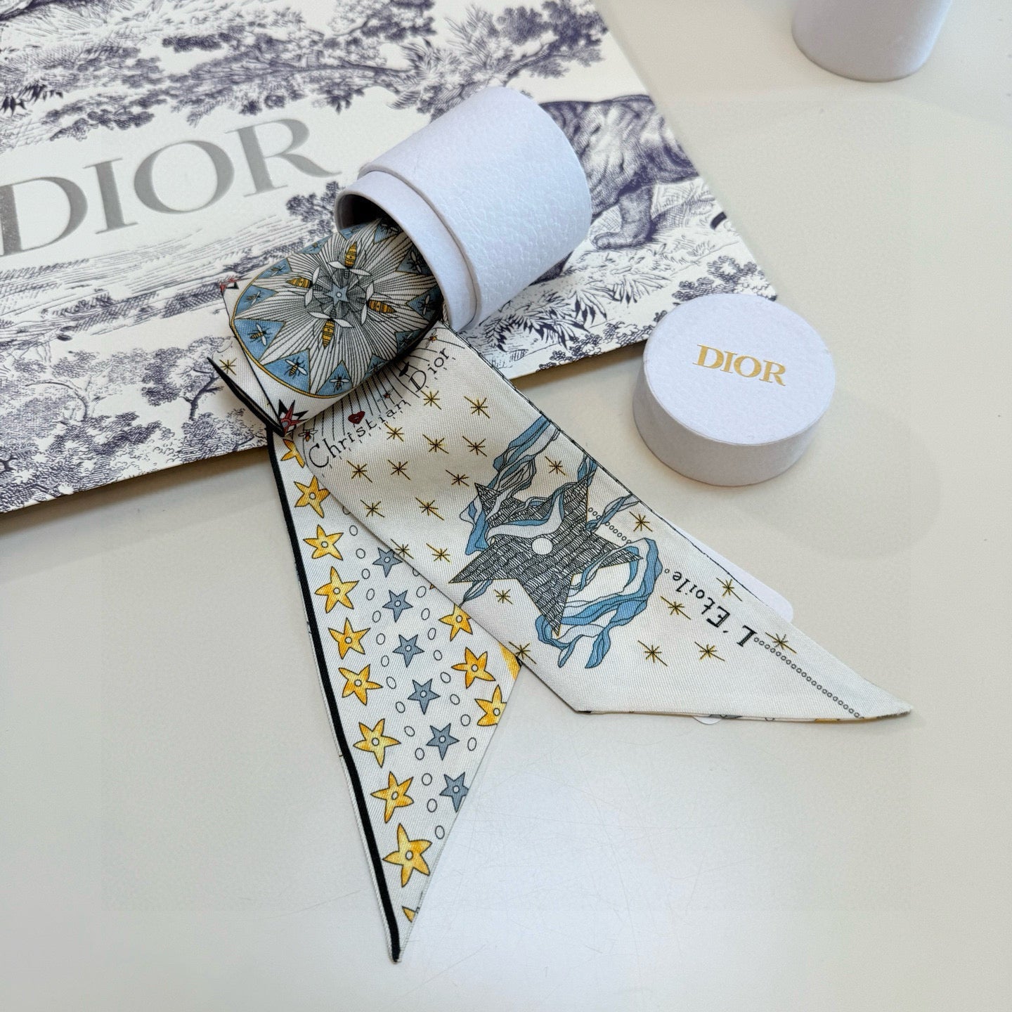 CD Twilly Mini Scarf 105cm Tarot Card White Yellow Mulberry Silk 928083