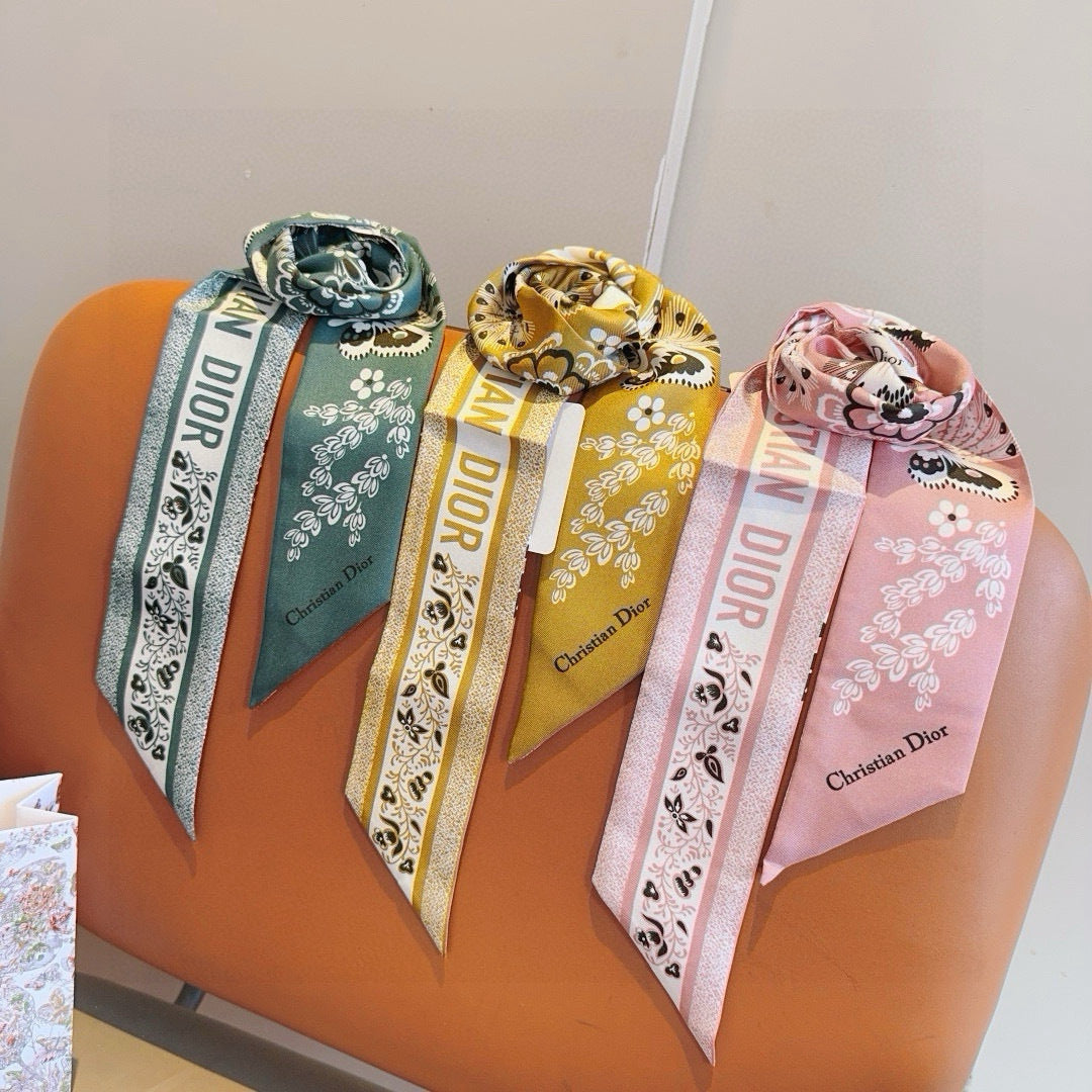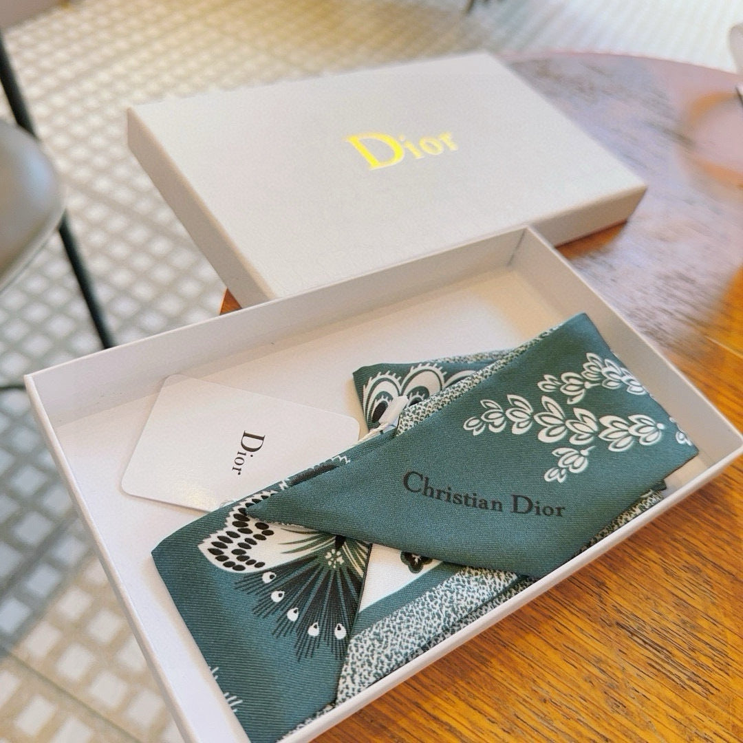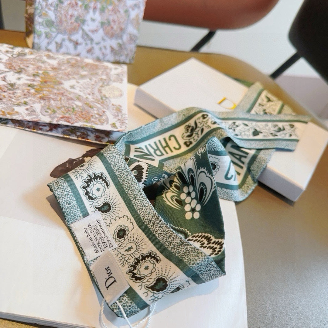 CD Twilly Mini Scarf 105cm Teal Black Mulberry Silk 668640