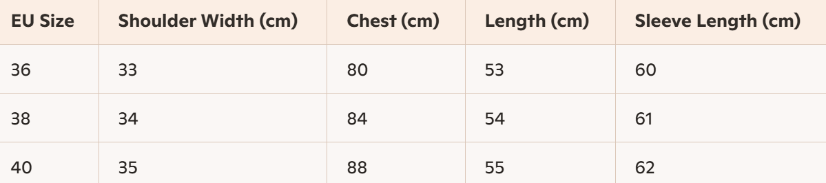 - Size : 36, 38, 40