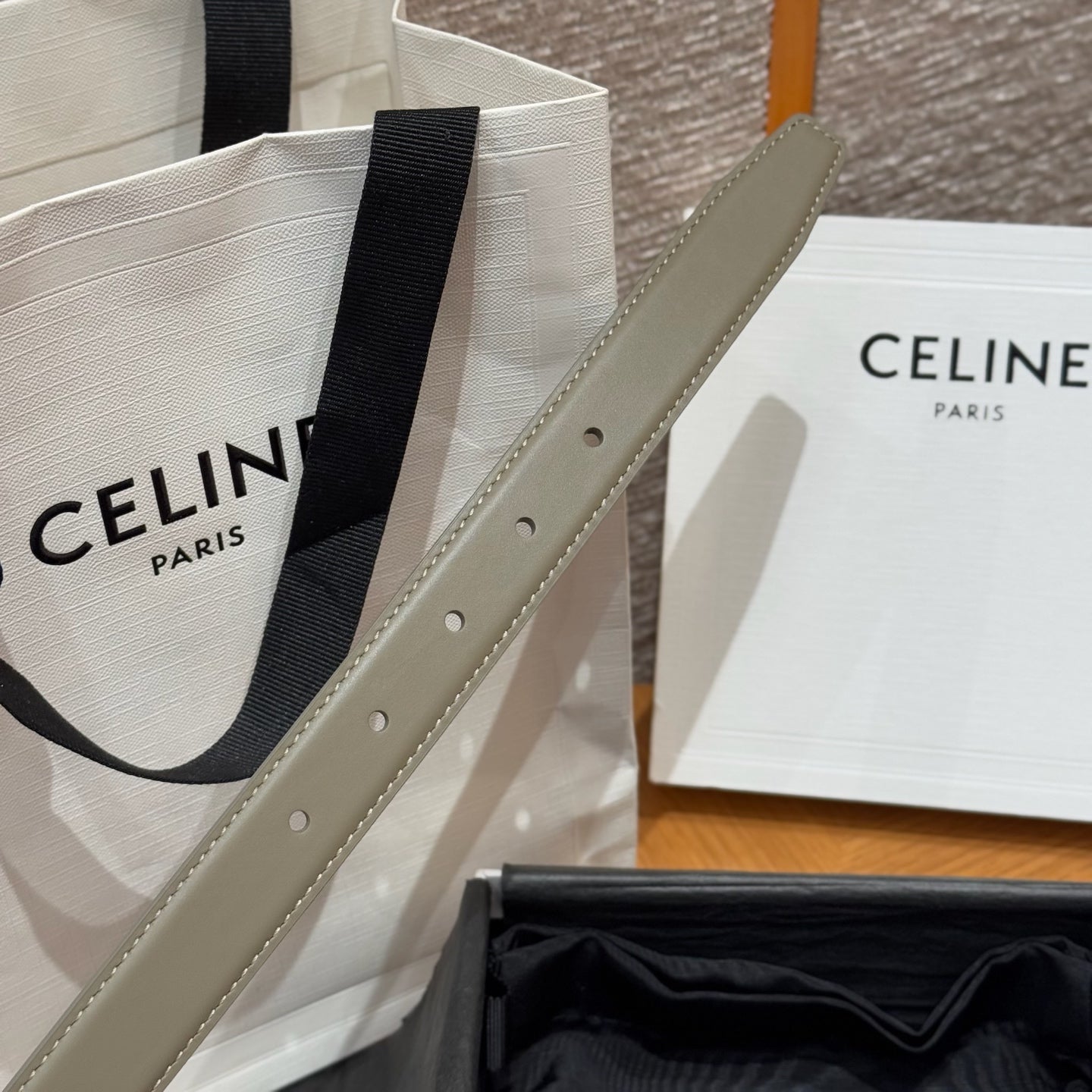 CEL Triomphe Belt 25mm Etoupe Gold Calfskin 187493