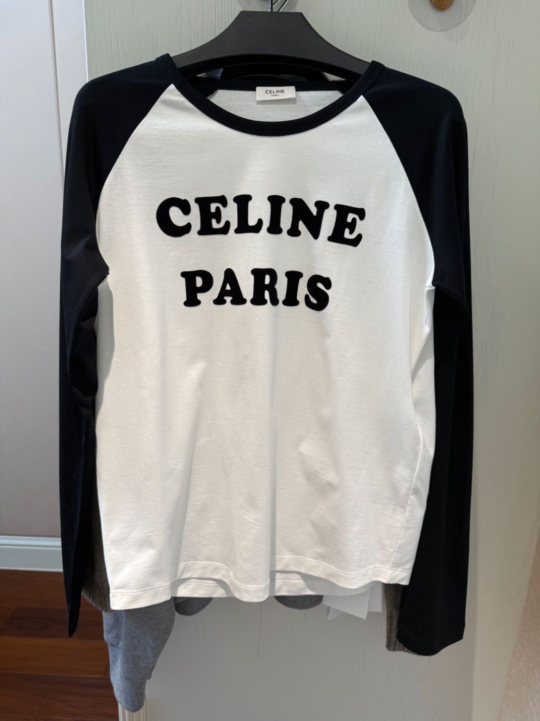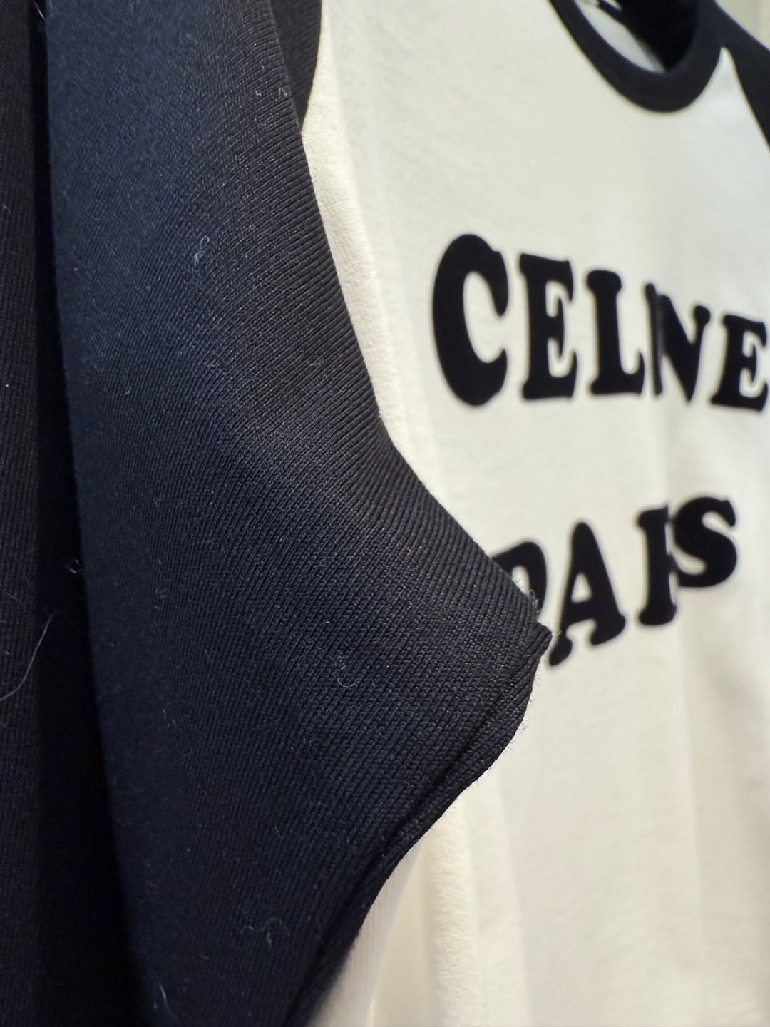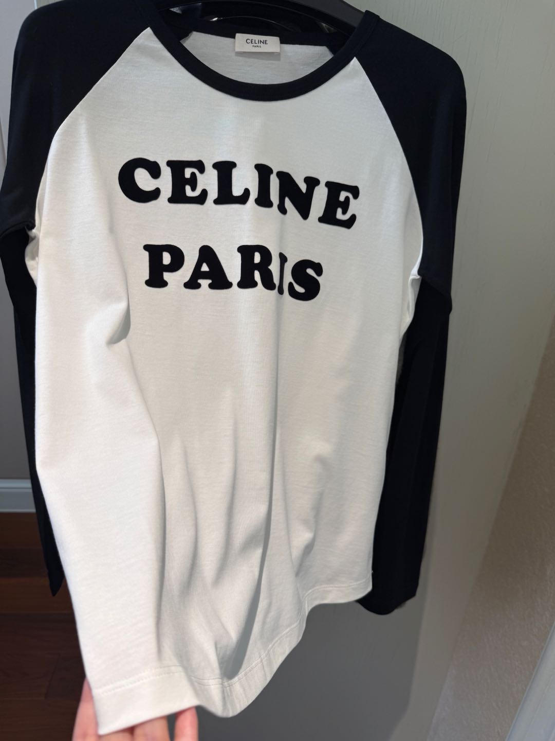 Celine 25 CELINE PARIS Long-sleeve T-shirt White mix Black Cotton