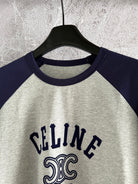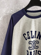 Celine 25 Flocked T-shirt Gray mix Navy Blue Cotton