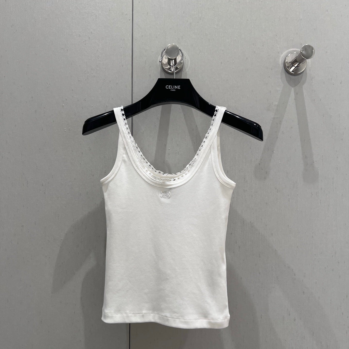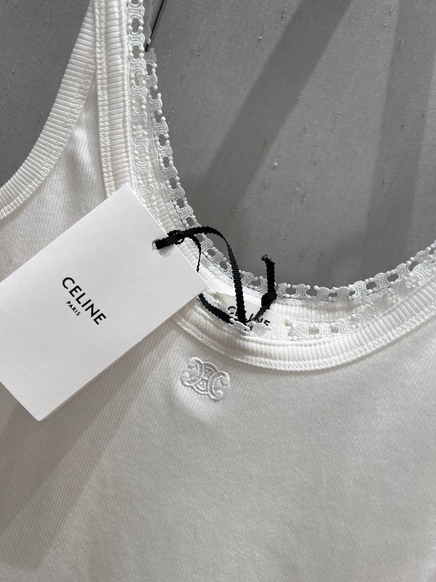 Celine 25 Lace Vest Camisole White Cotton Silk 215160