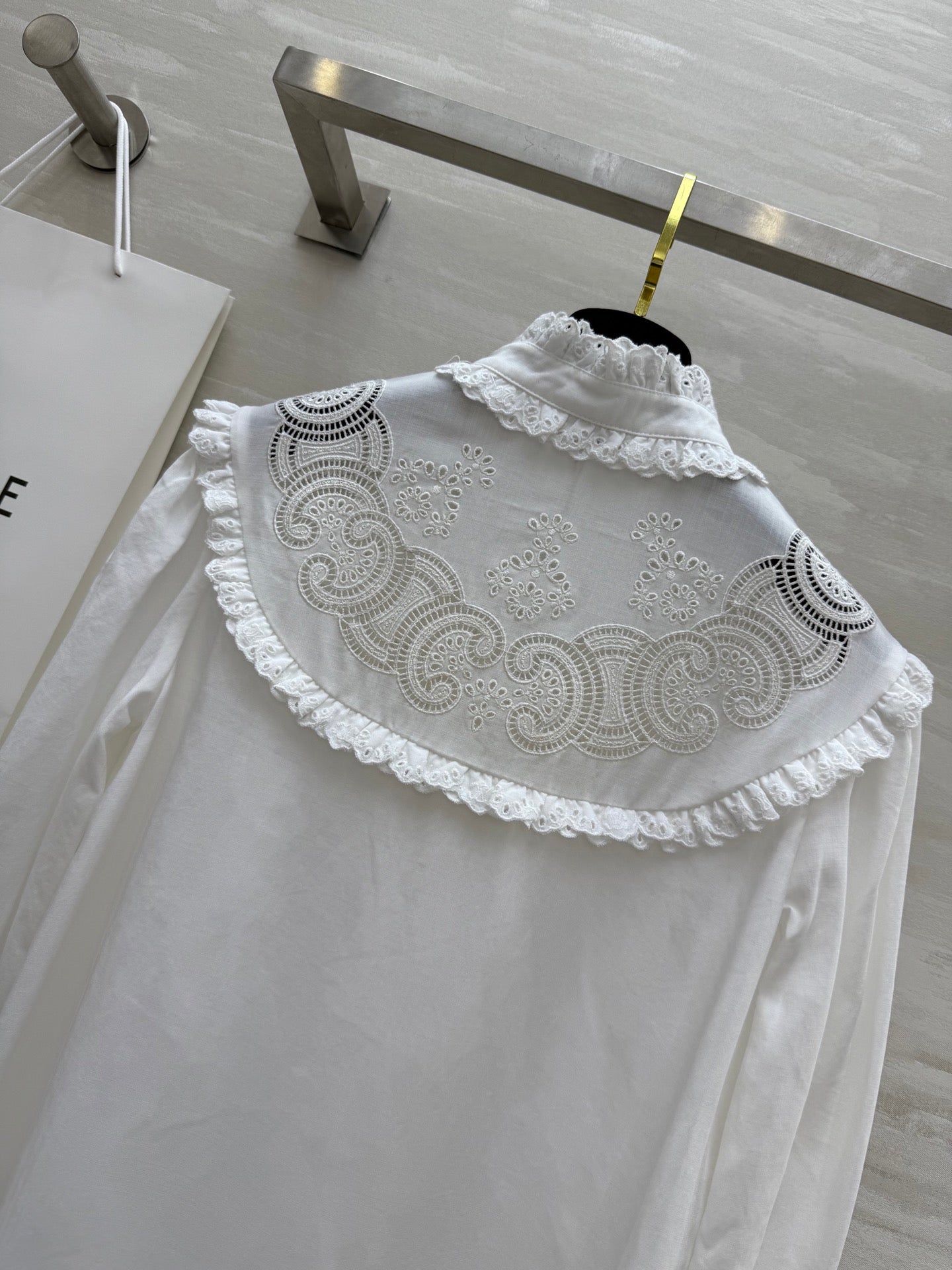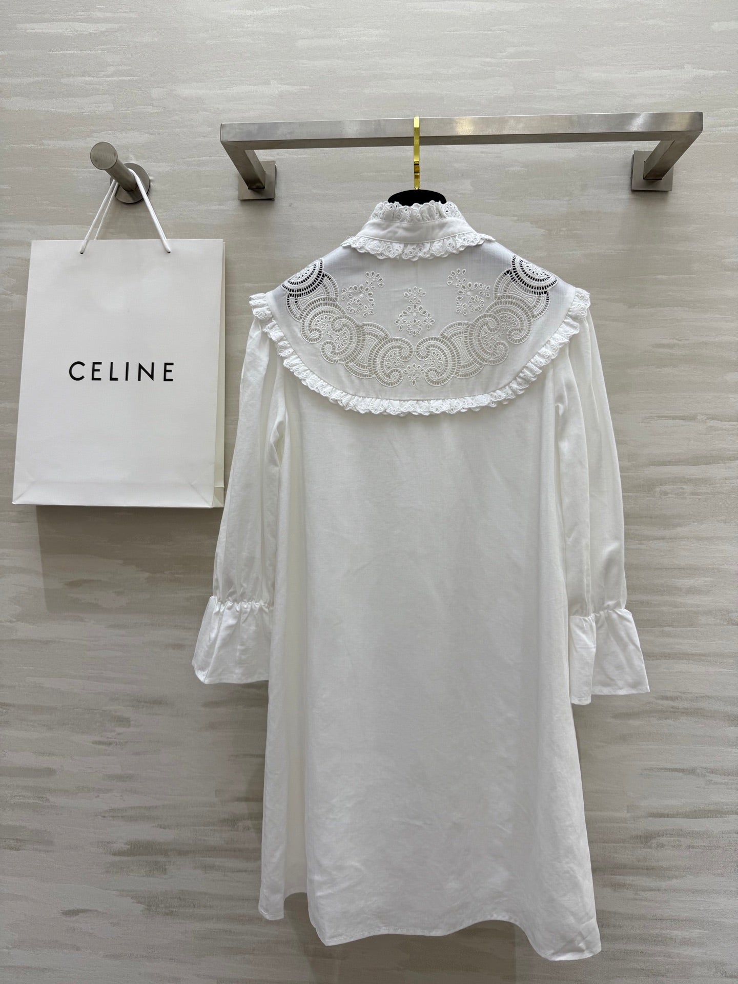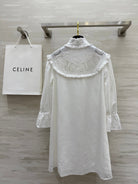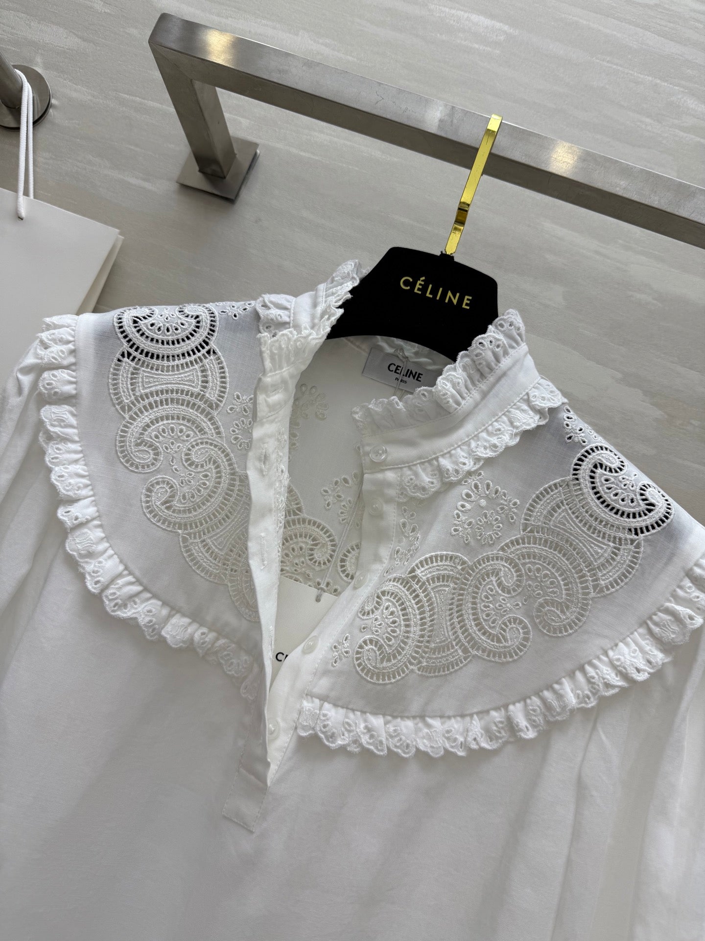 Celine 25 Long sleeve embroidered shirt dress White Cotton
