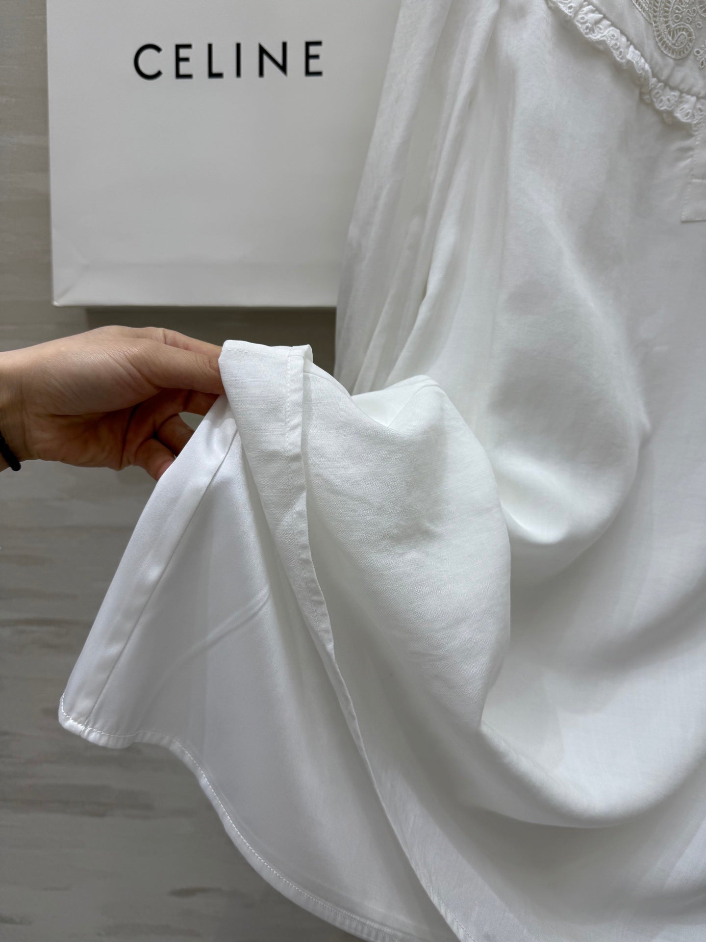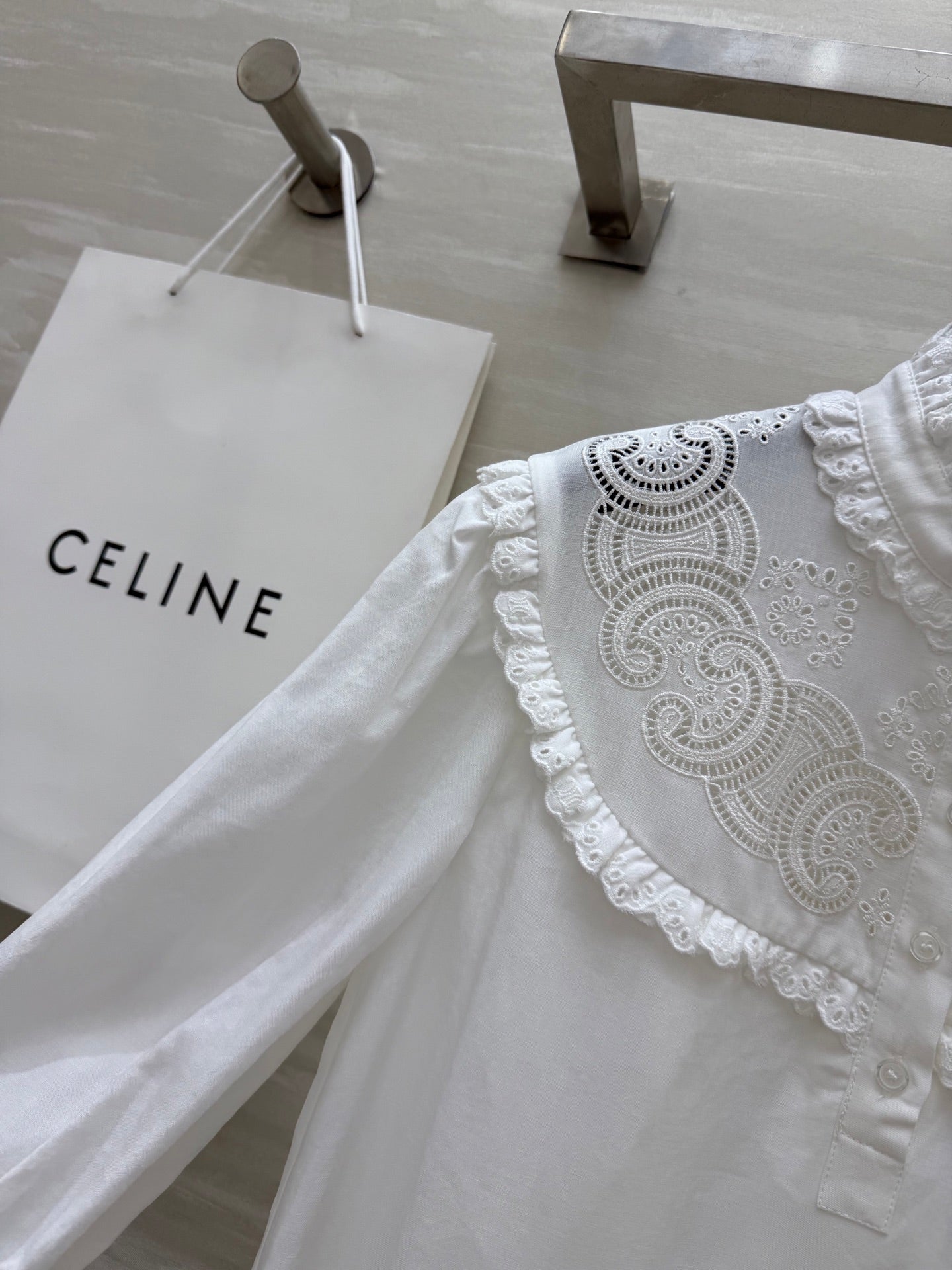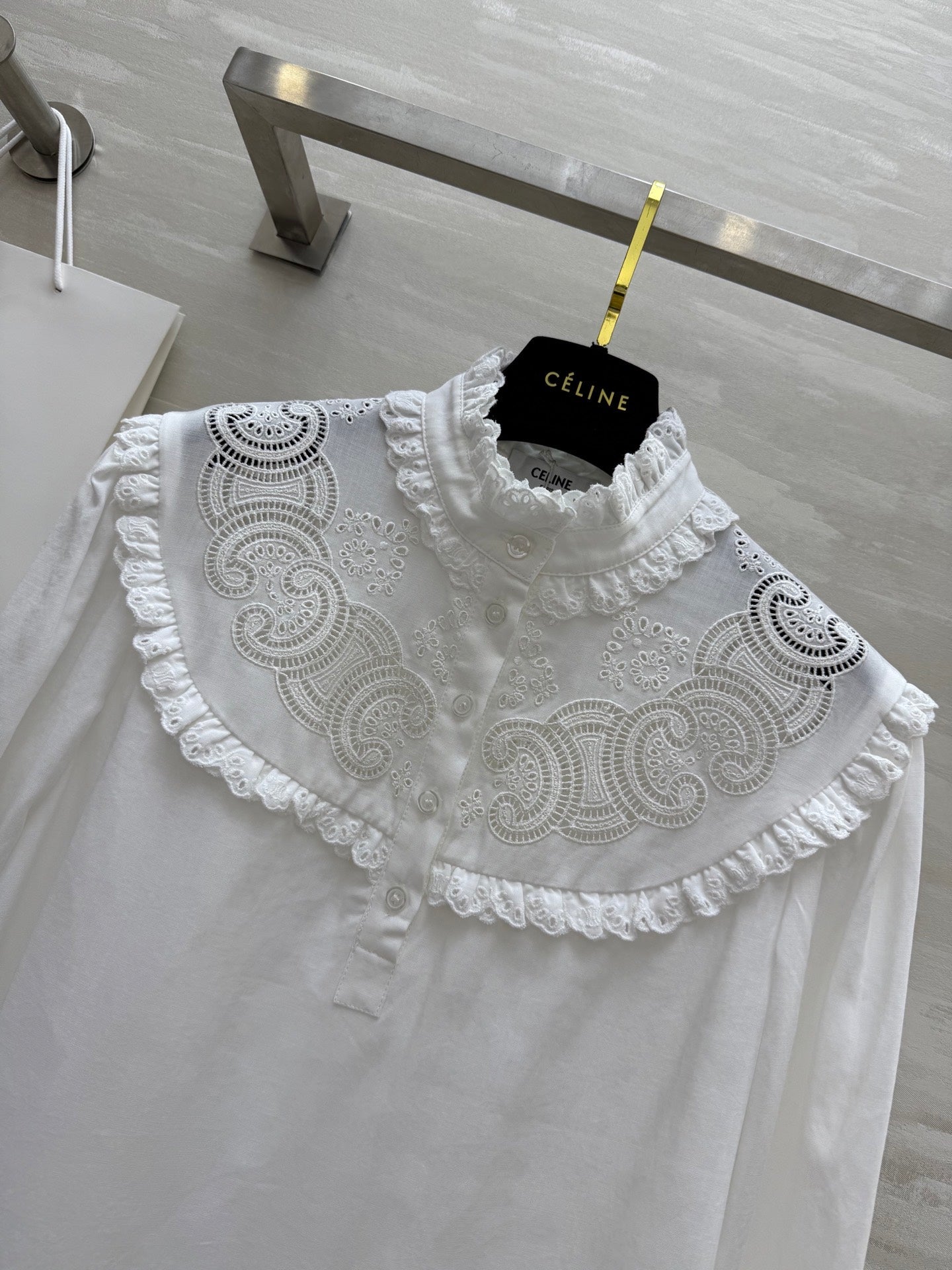 Celine 25 Long sleeve embroidered shirt dress White Cotton
