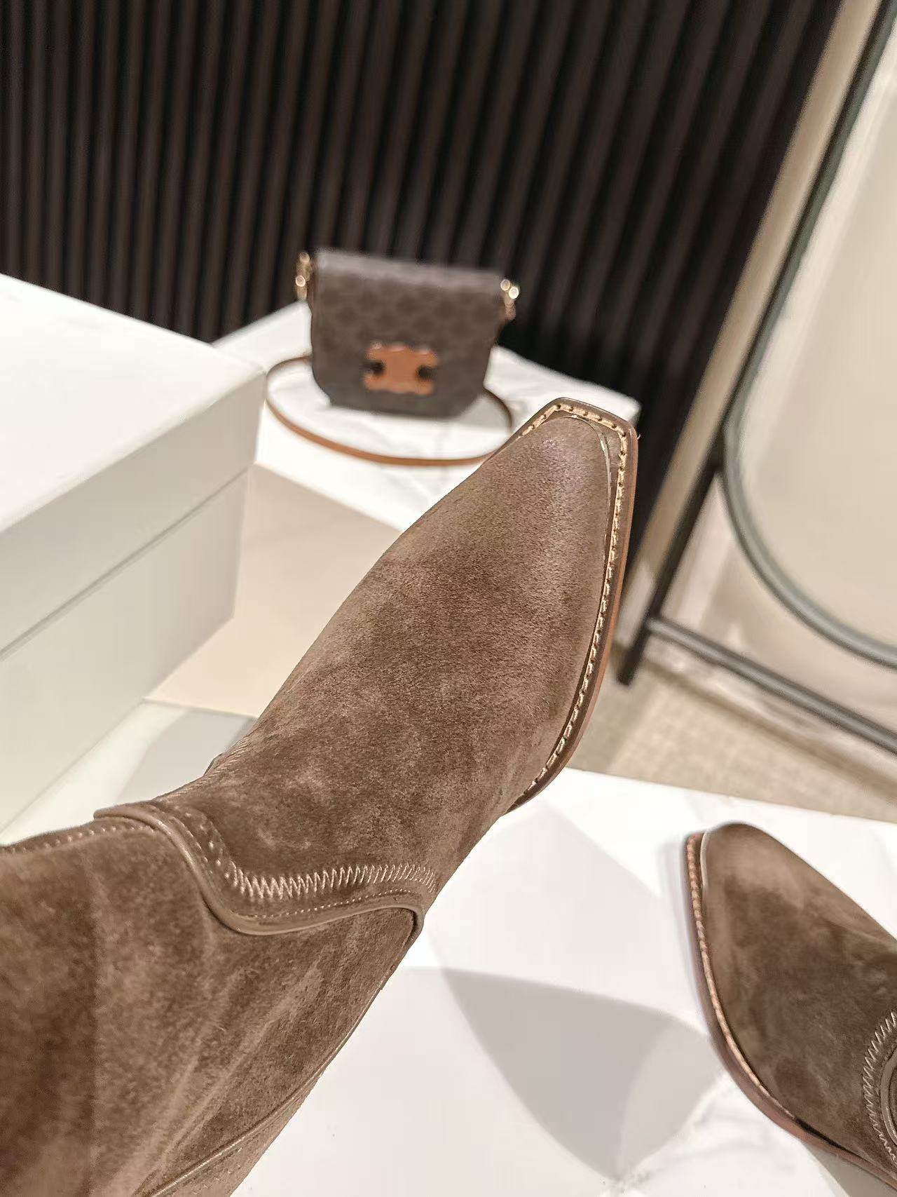 CELINE 25 Mid Calf Cowboy Boots Dark Brown Suede