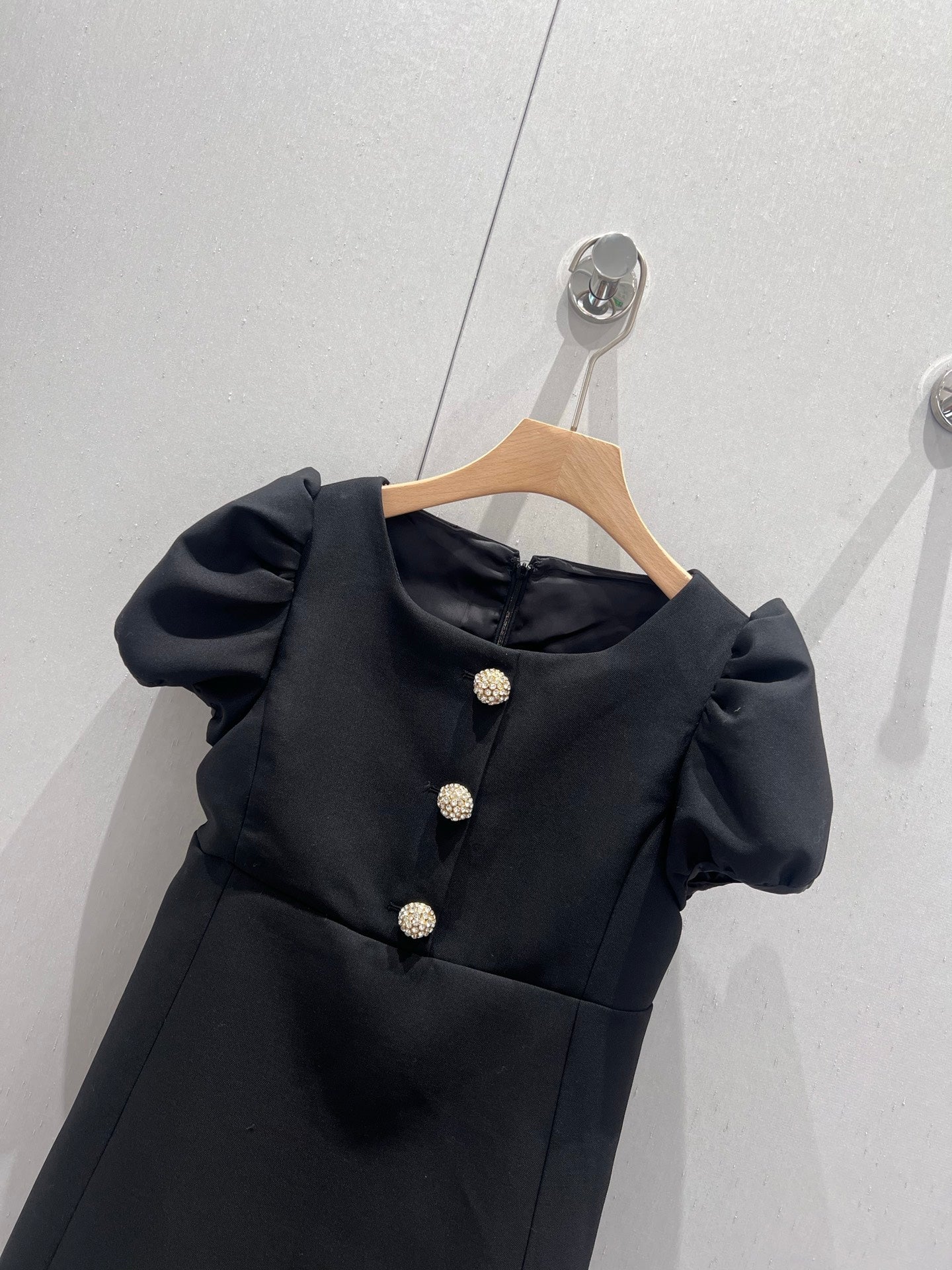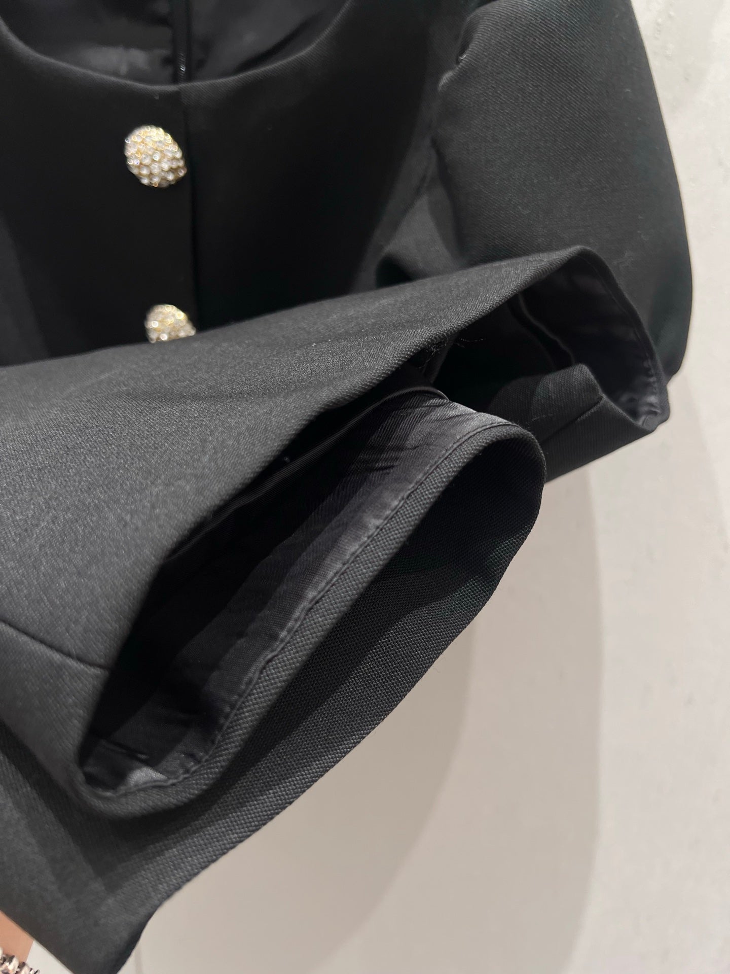 Celine 25 Rhinestone Button Mini Dress Black Wool 220842
