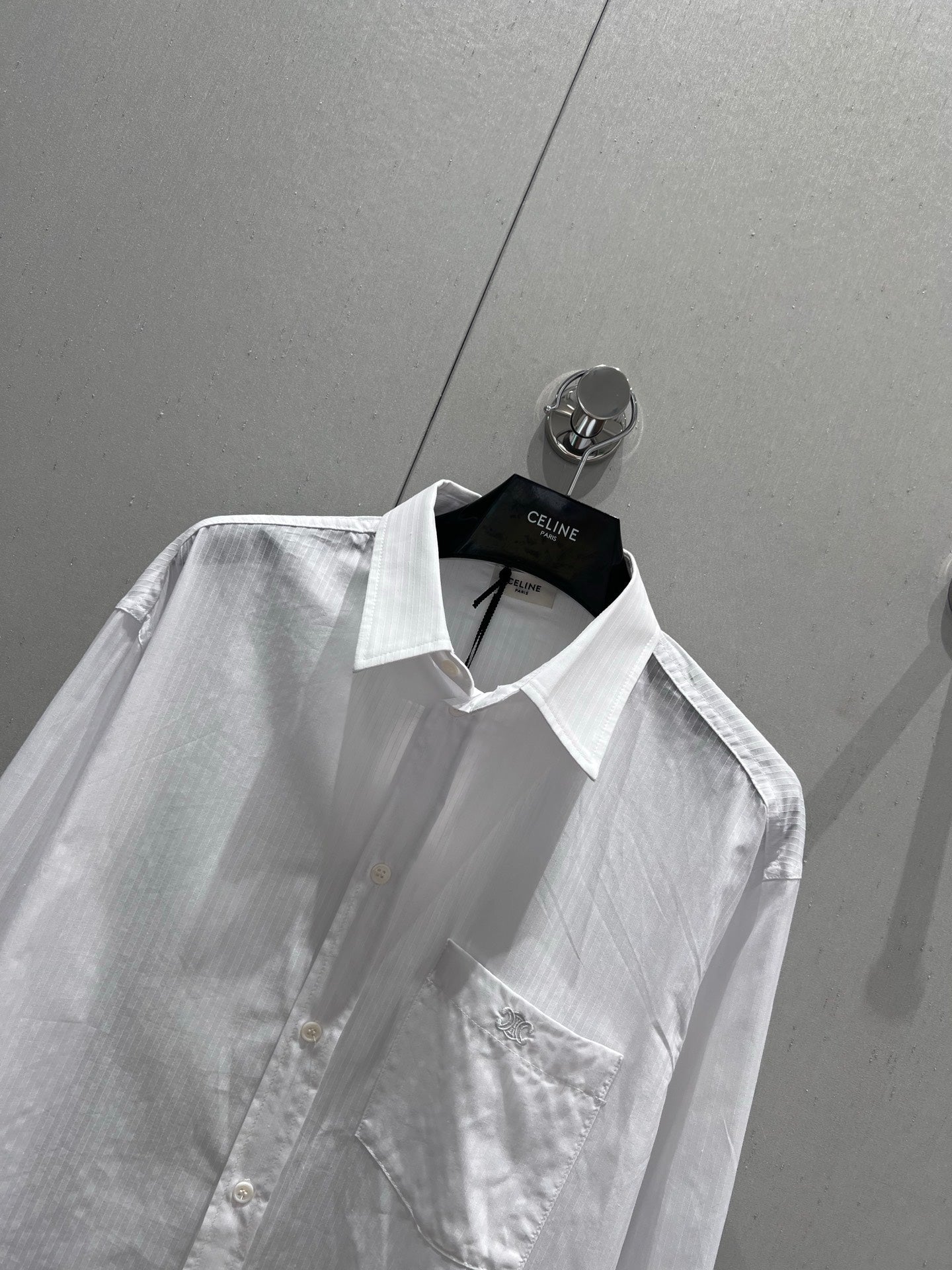 Celine 25 Striped Long-sleeved Shirt White Cotton 217877