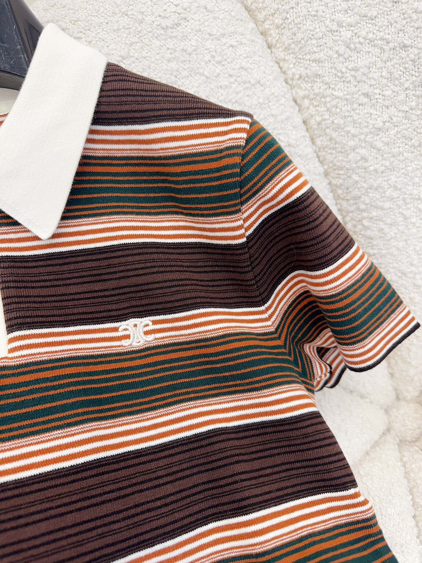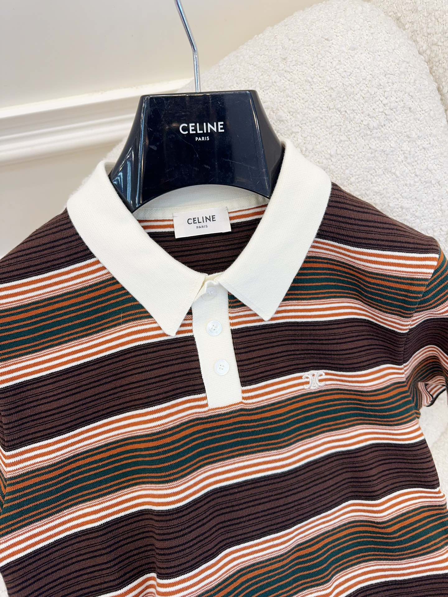 Celine 25 Striped Polo Shirt Brown Cotton