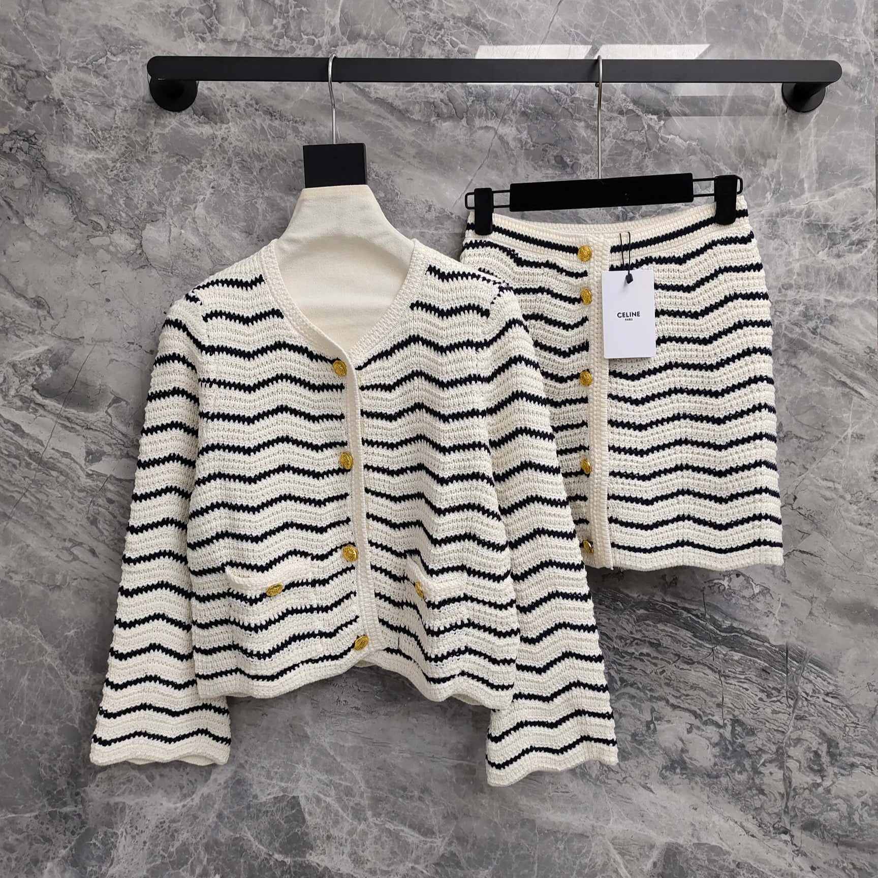 Celine 25 Striped Suit White Black Wool Polyester 278762