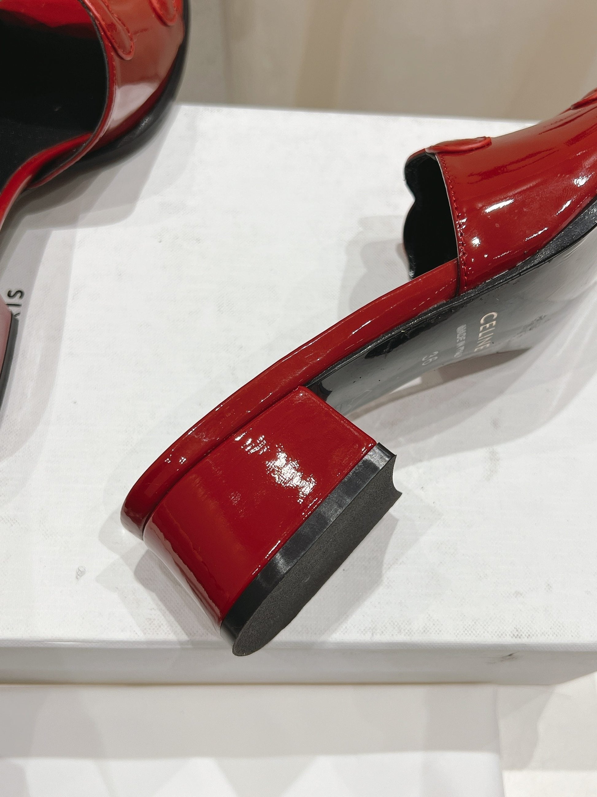 CELINE 25C CLEMENCE MULE RED PATENT LEATHER 236750