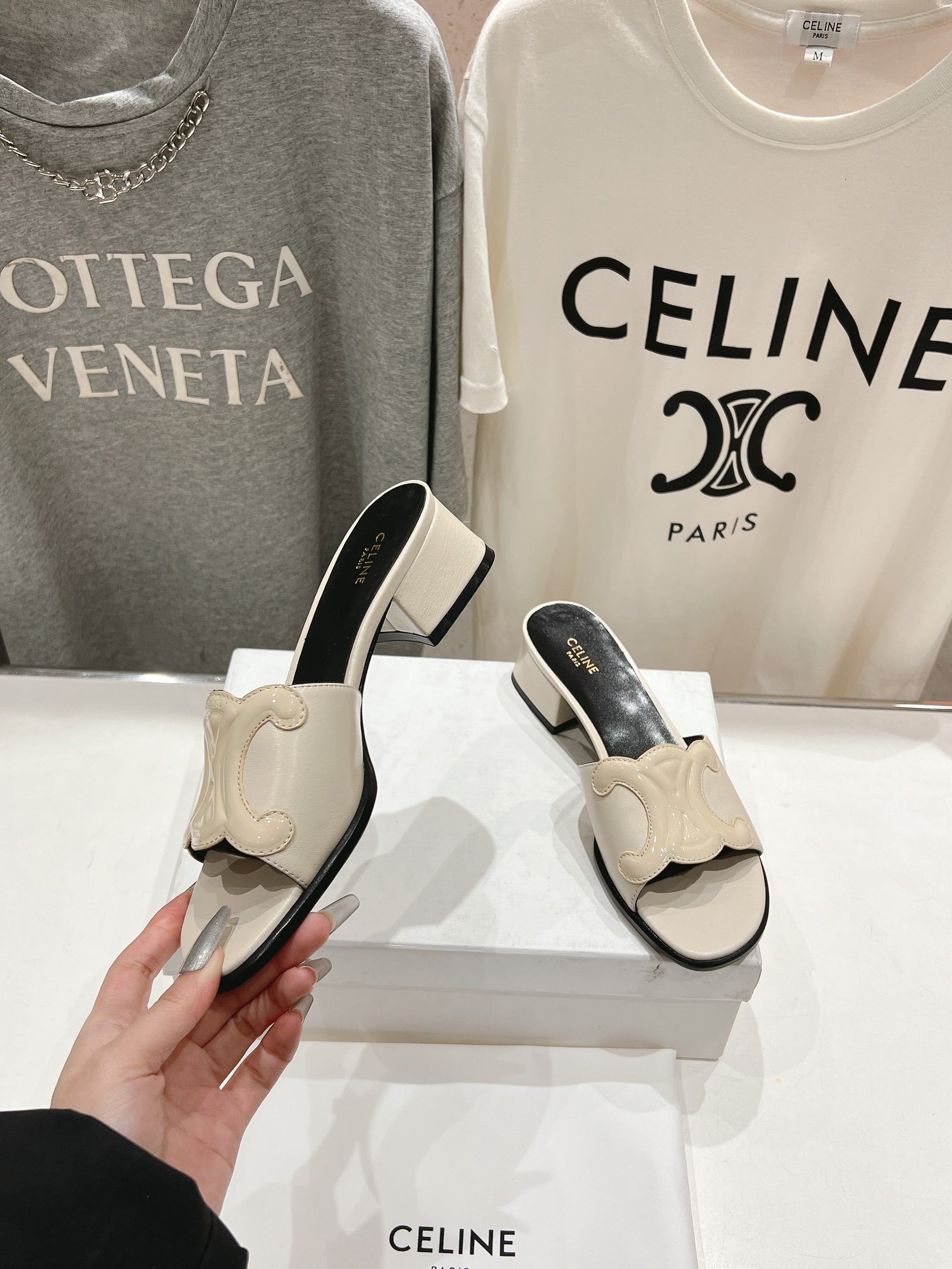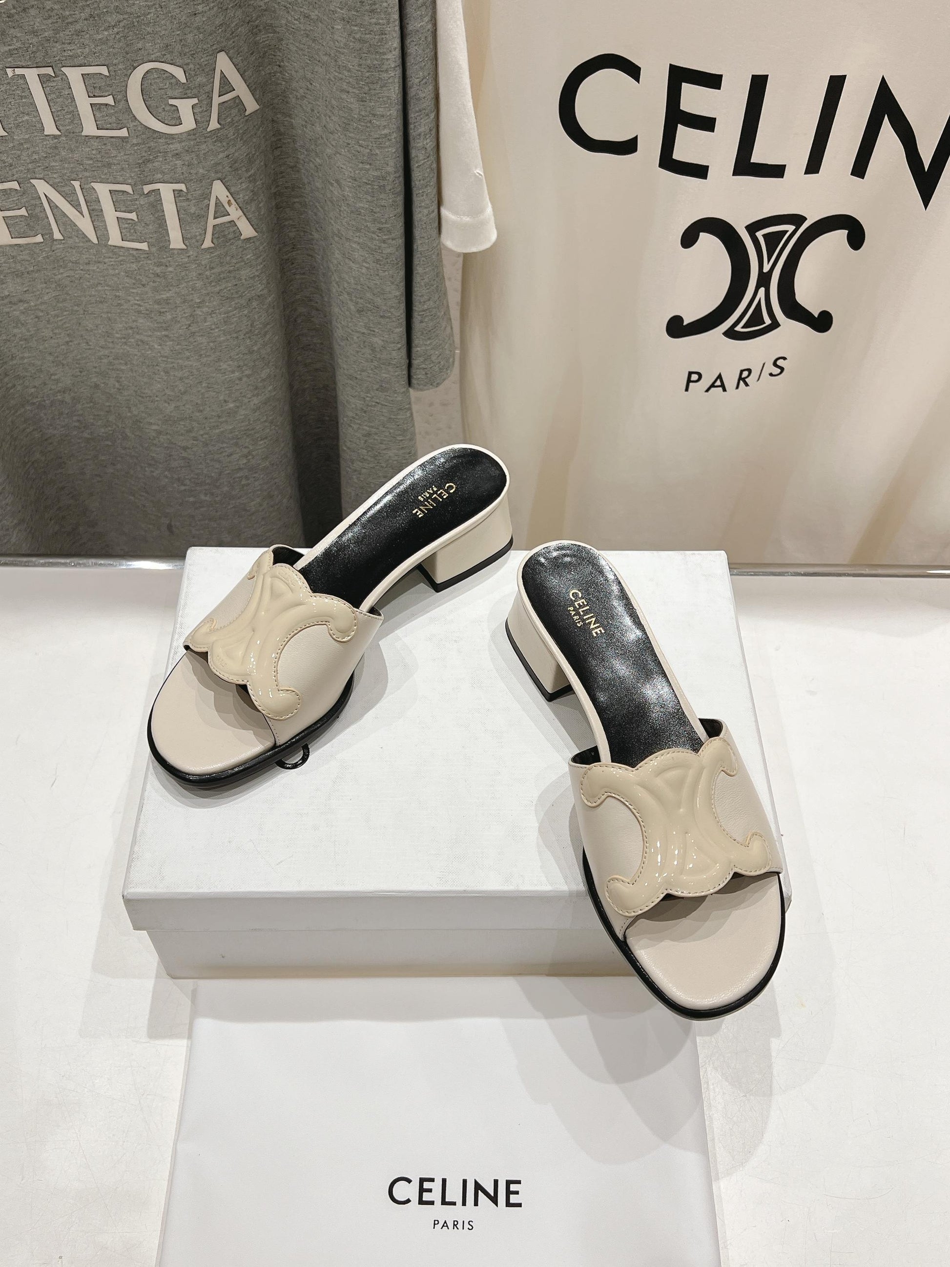 CELINE 25C CLEMENCE MULE WHITE SHEEPSKIN 236749