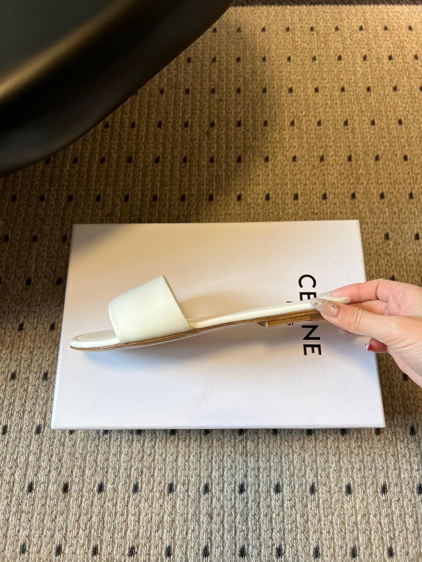 Celine 26 Flat Mule Slippers White Sheepskin 621530