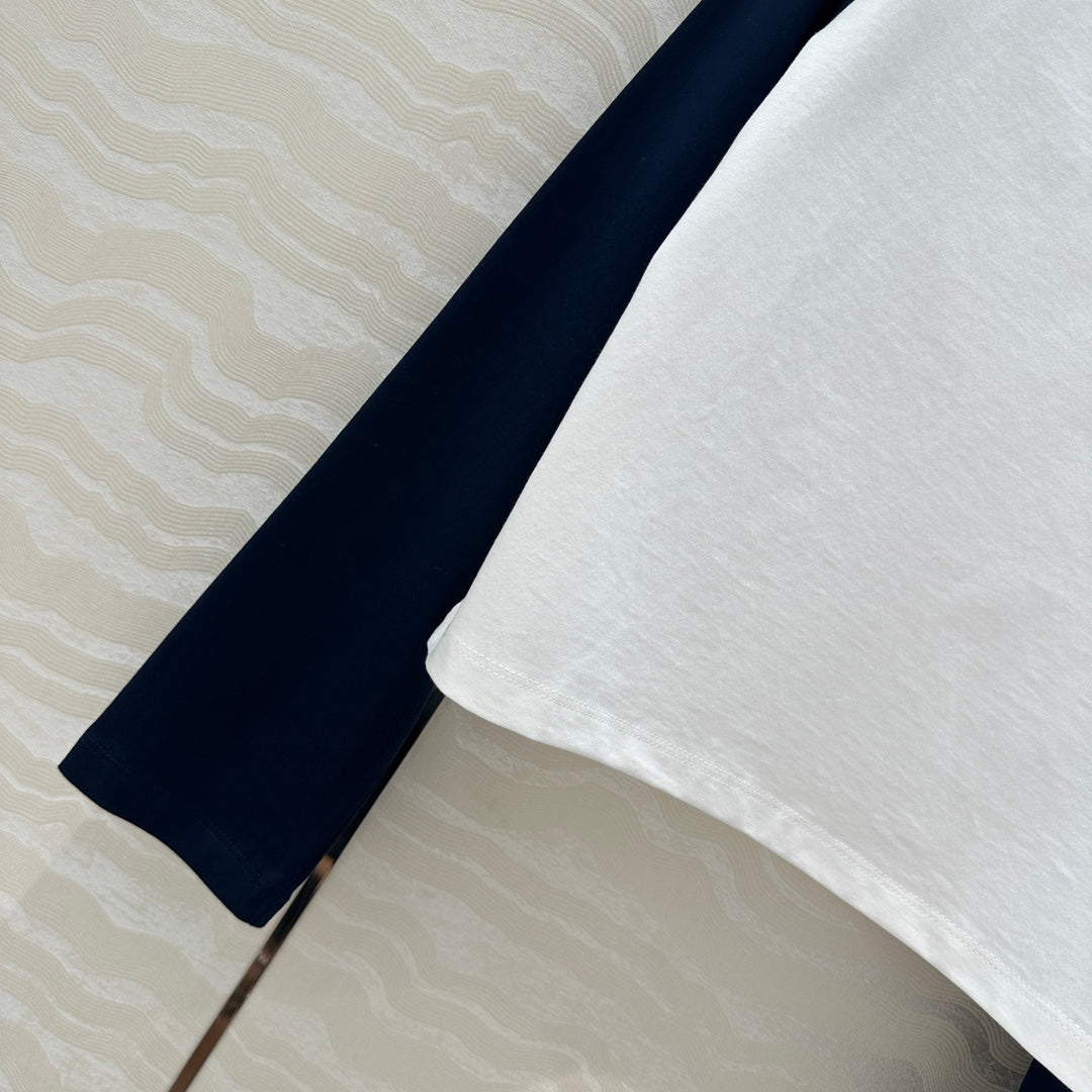 Celine Arc de Triomphe long-sleeved T-shirt Navy Blue mix White Cotton