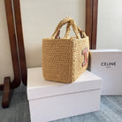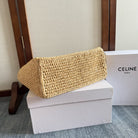 Celine Cabas Thais Handbag Beige mix Brown Plant Material And Cow Leather