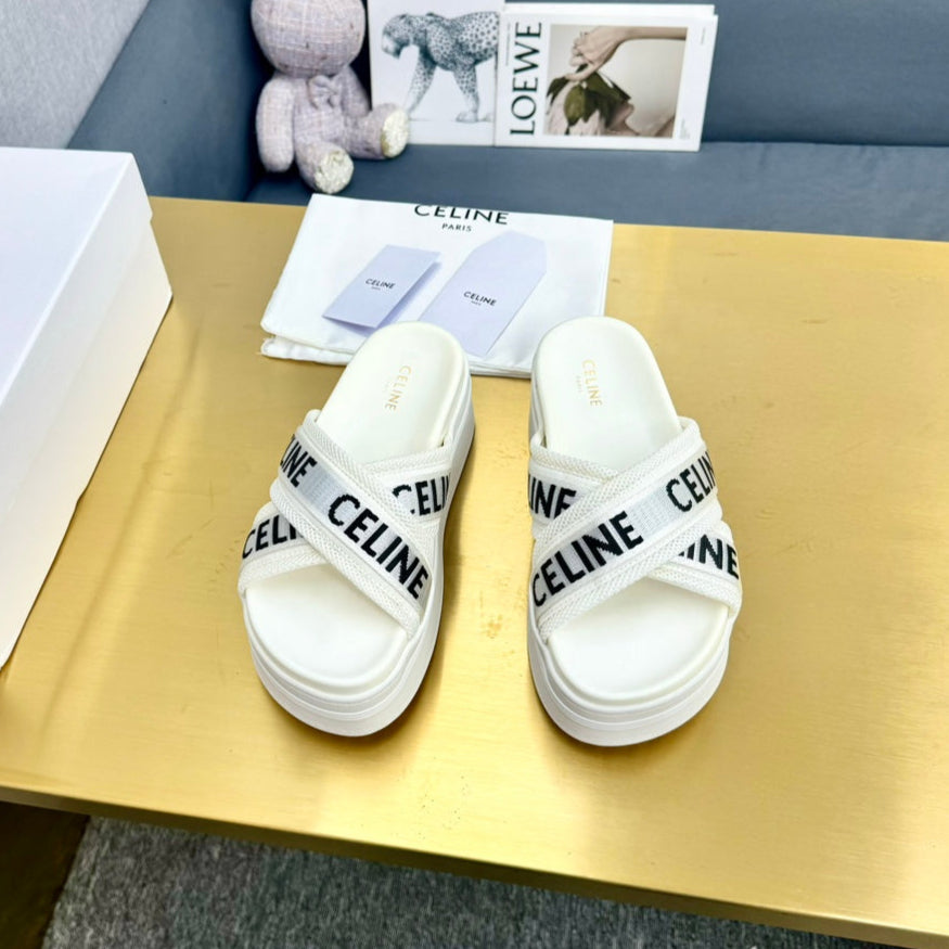 Celine Block Slide White Fabric with Rubber 238138
