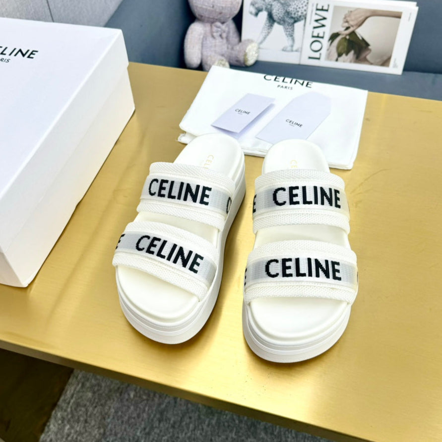Celine Flatform Dad Sandal Mule White Fabric with Rubber 238141