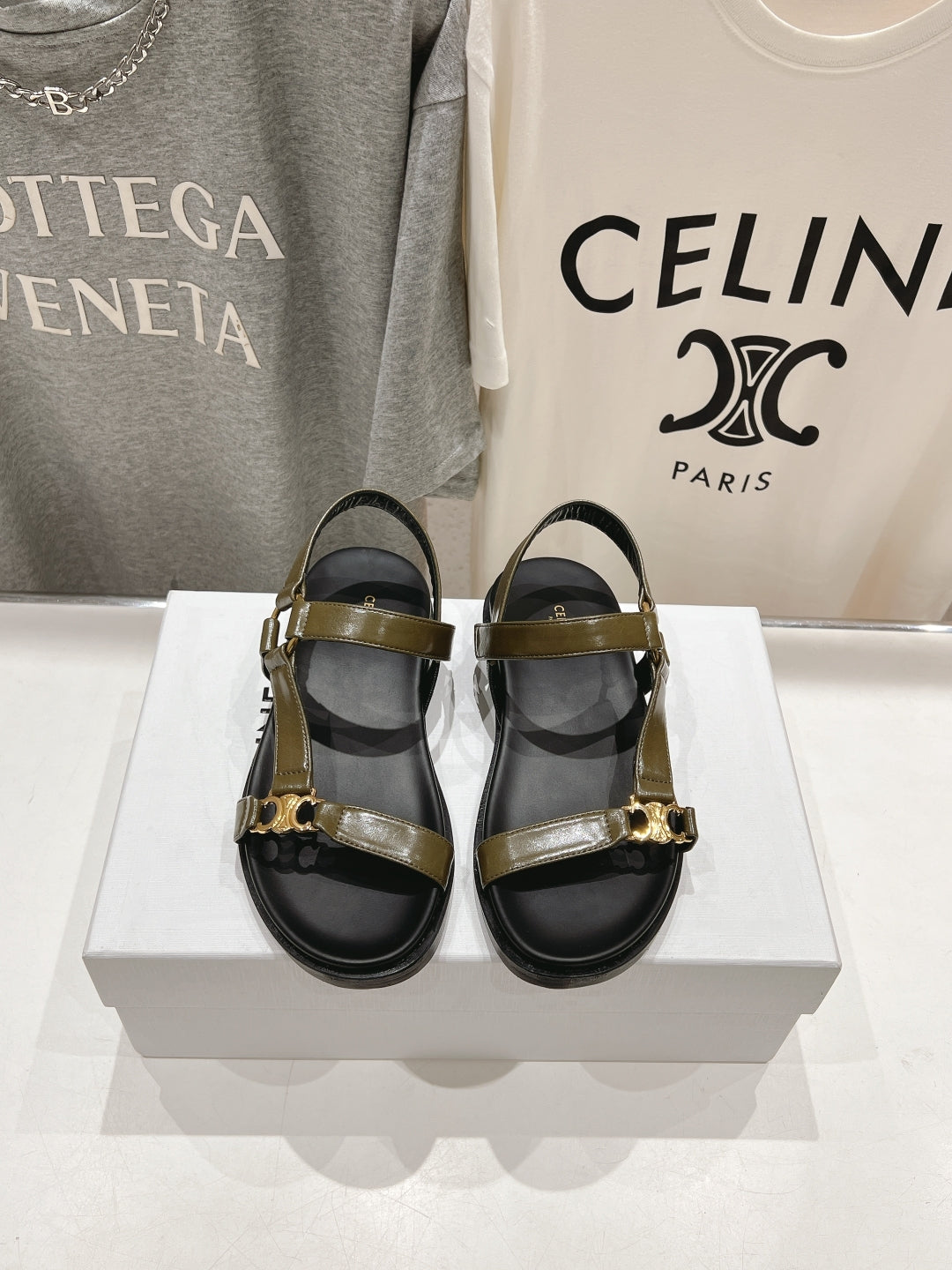 CELINE MAUD SANDAL WITH TRIOMPHE ARMY GREEN COWHIDE 236757