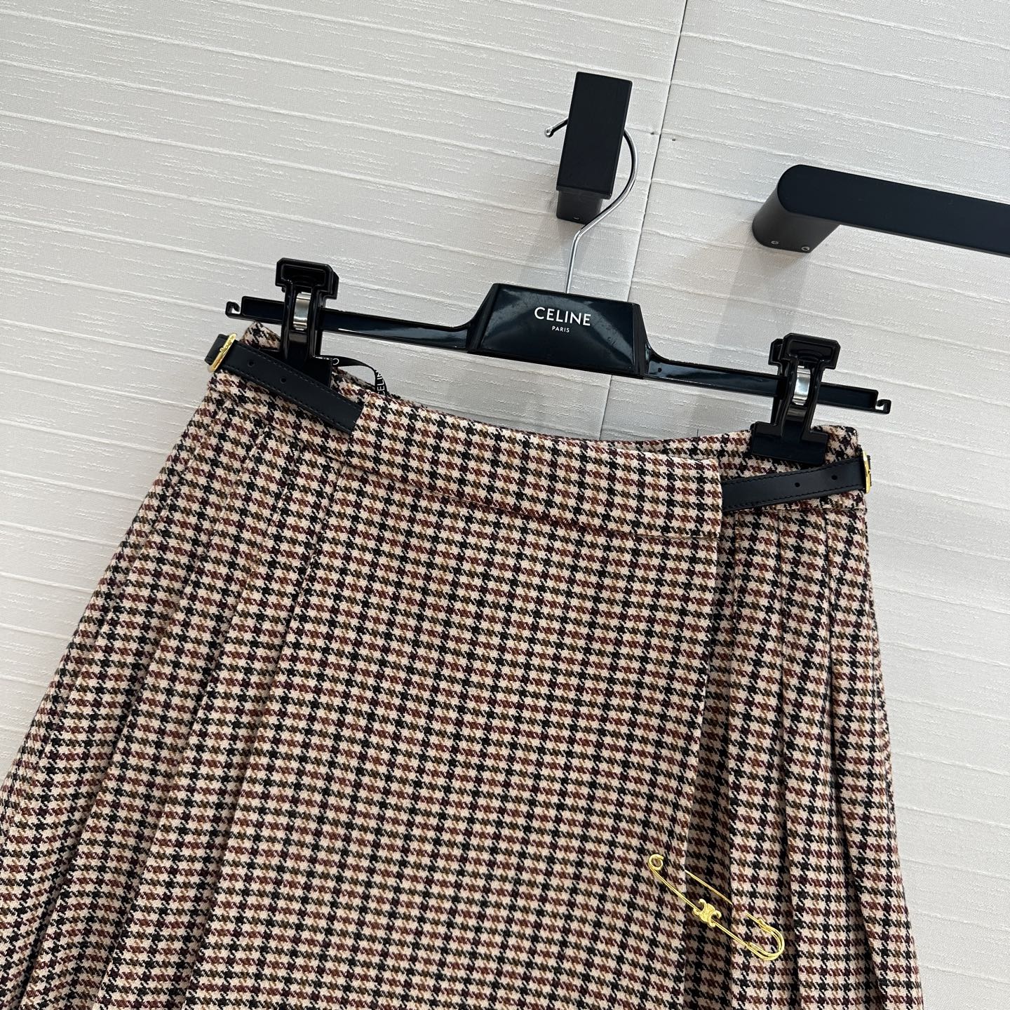 Celine Pleated Skirt Brown Wool Cotton Polyester
