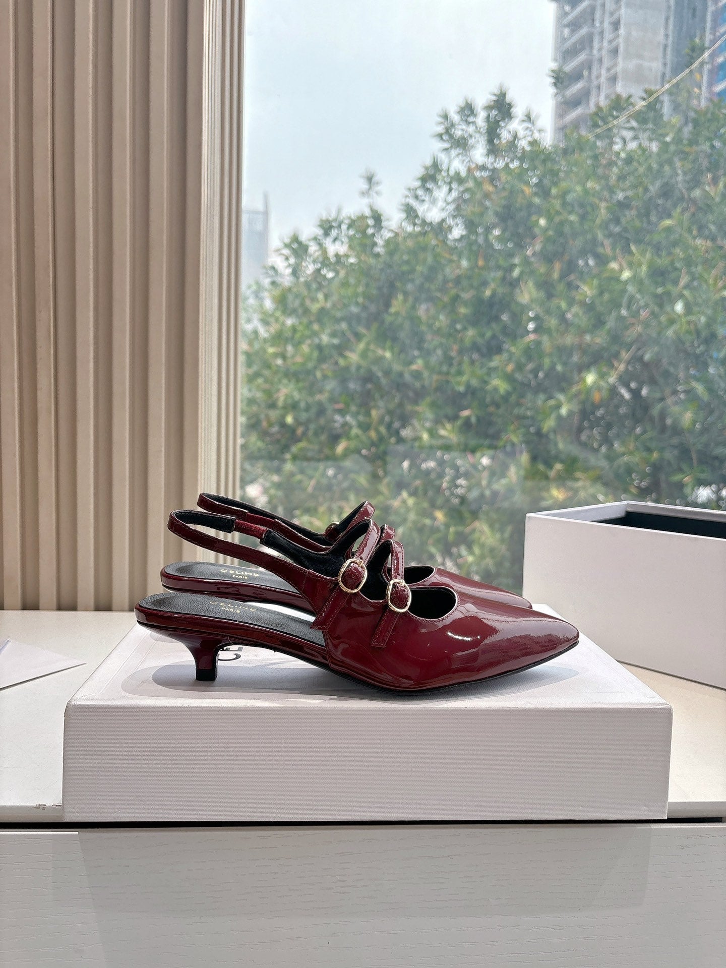 CELINE Slingback Red Patent Leather 285947