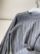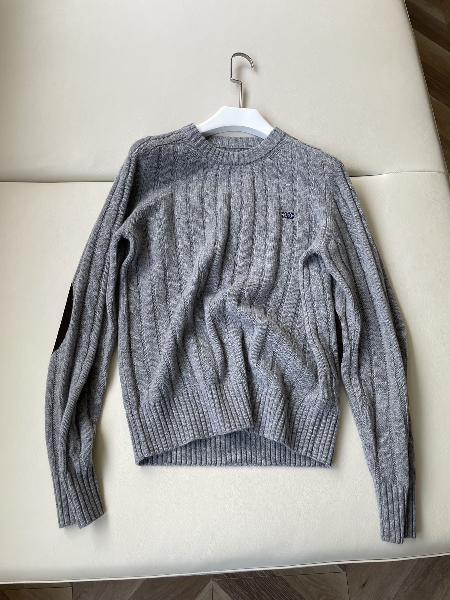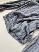 Celine Twisted Leather Sleeve Sweater Gray Cashmere