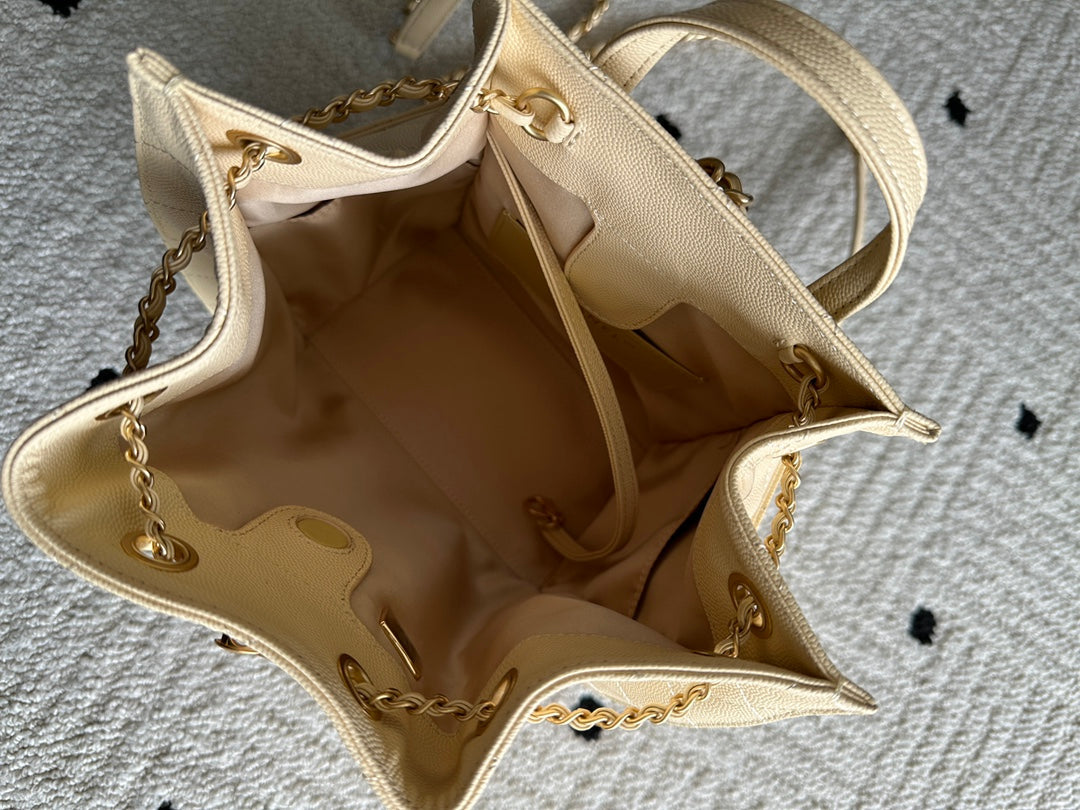 Chanel 2025 Backpack 23cm Light Yellow Grained Calfskin 318276