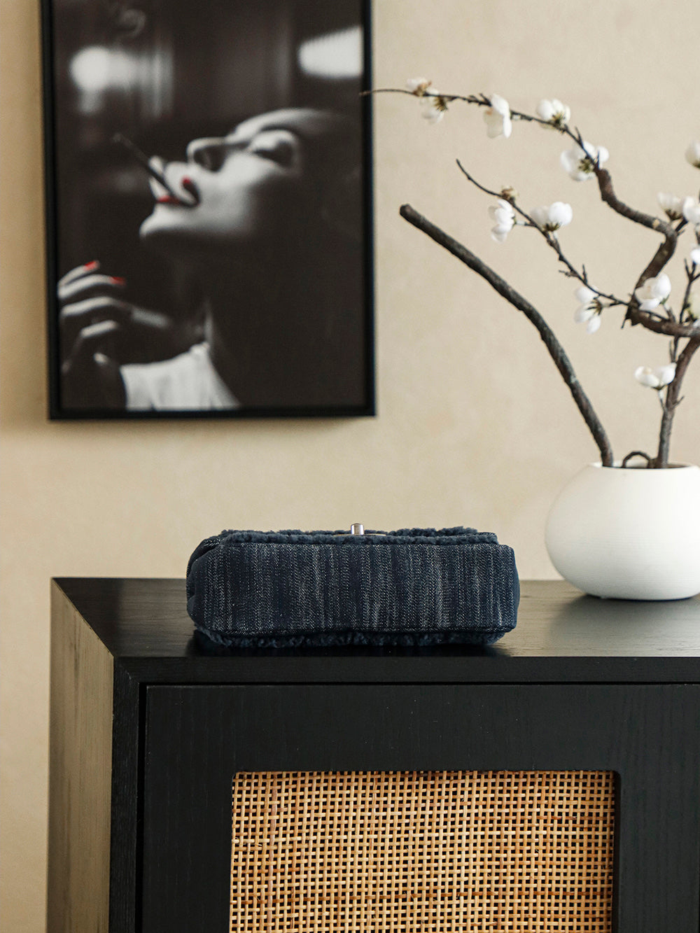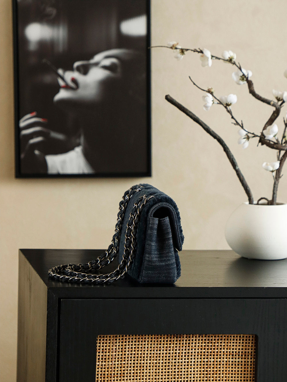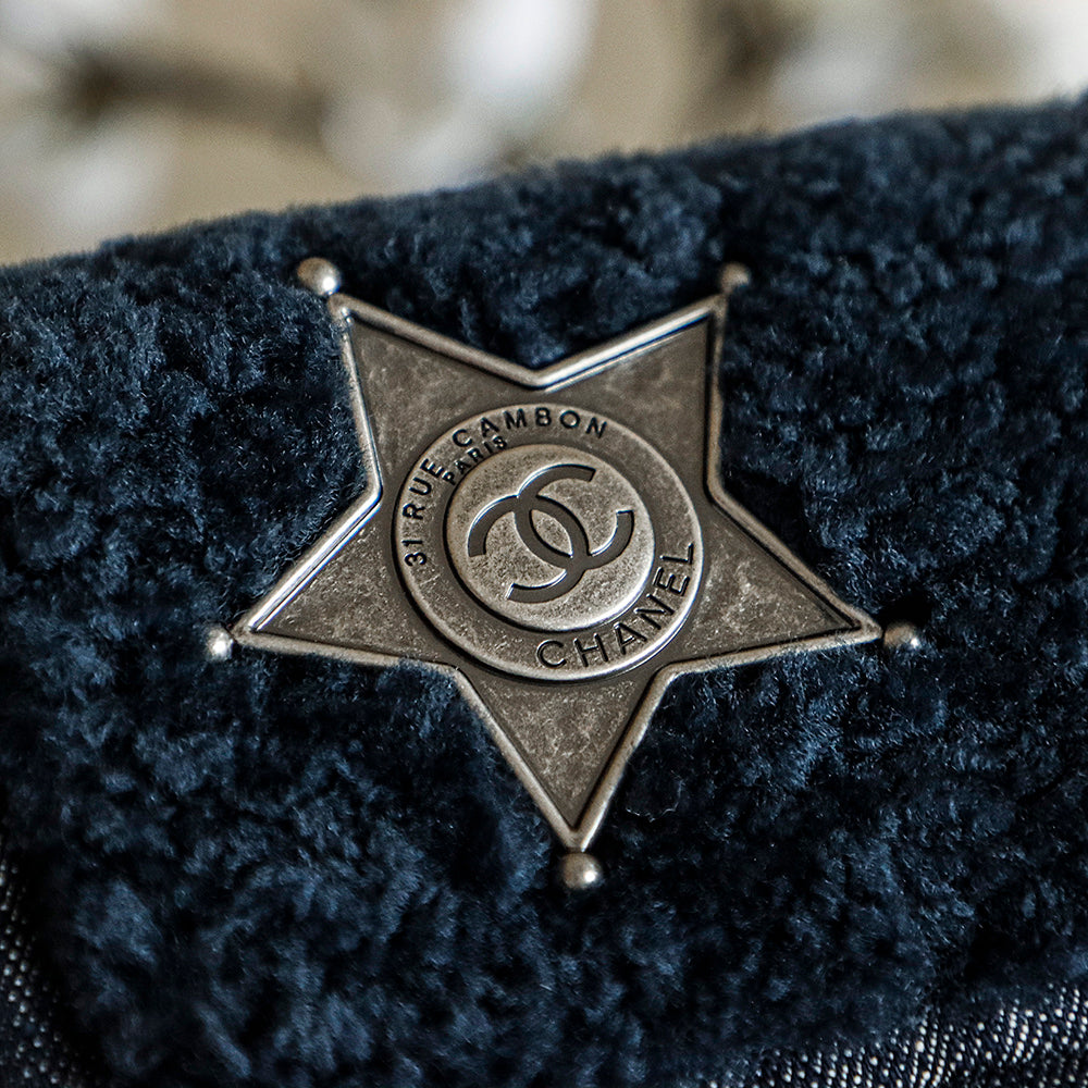 Chanel 2025 Dallas Shearling Star Bag 21cm Navy Blue Wool Denim 318220