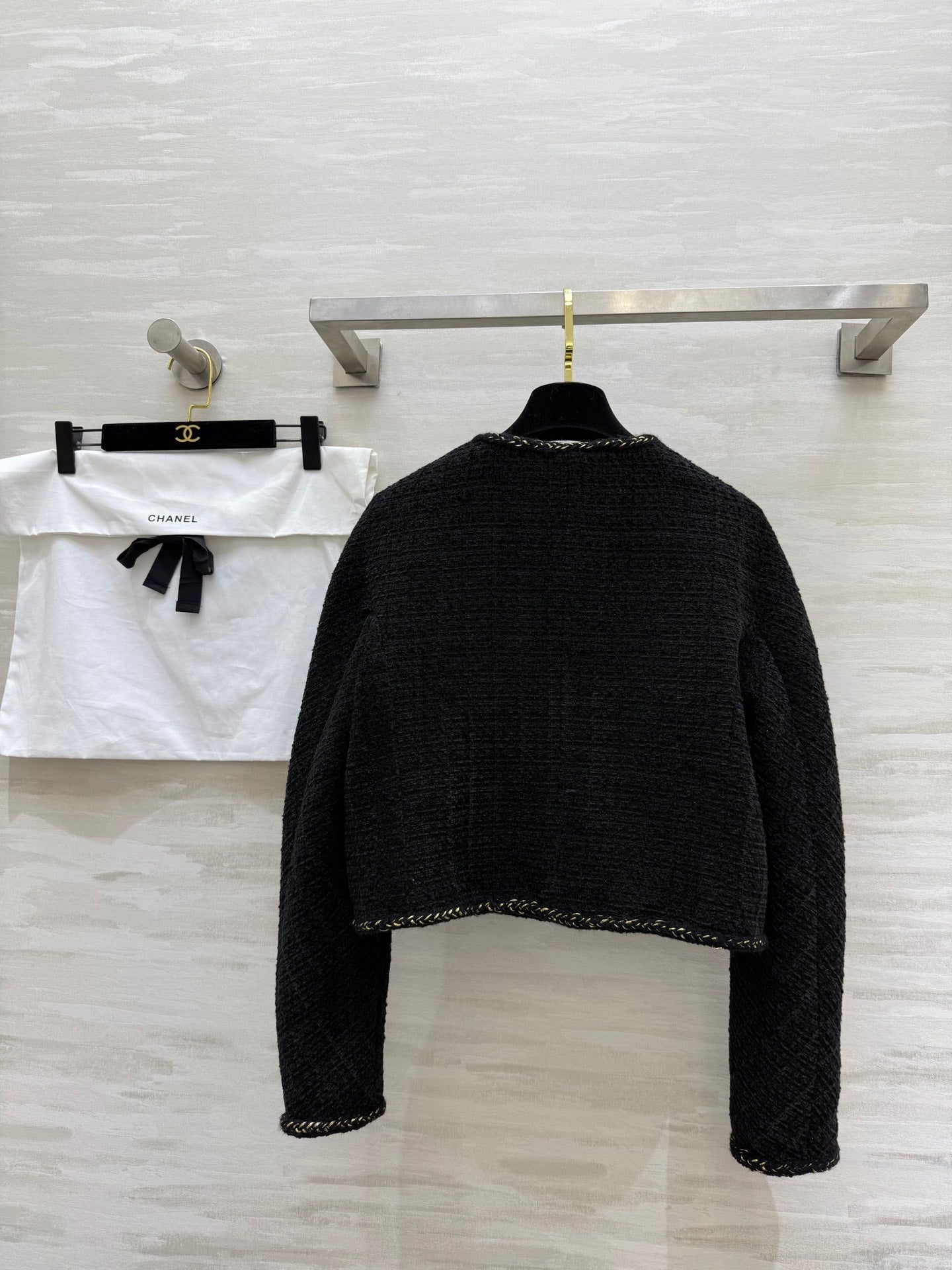 Chanel 2025 Jacket Black Tweed Fabric Gold Buckle 319479