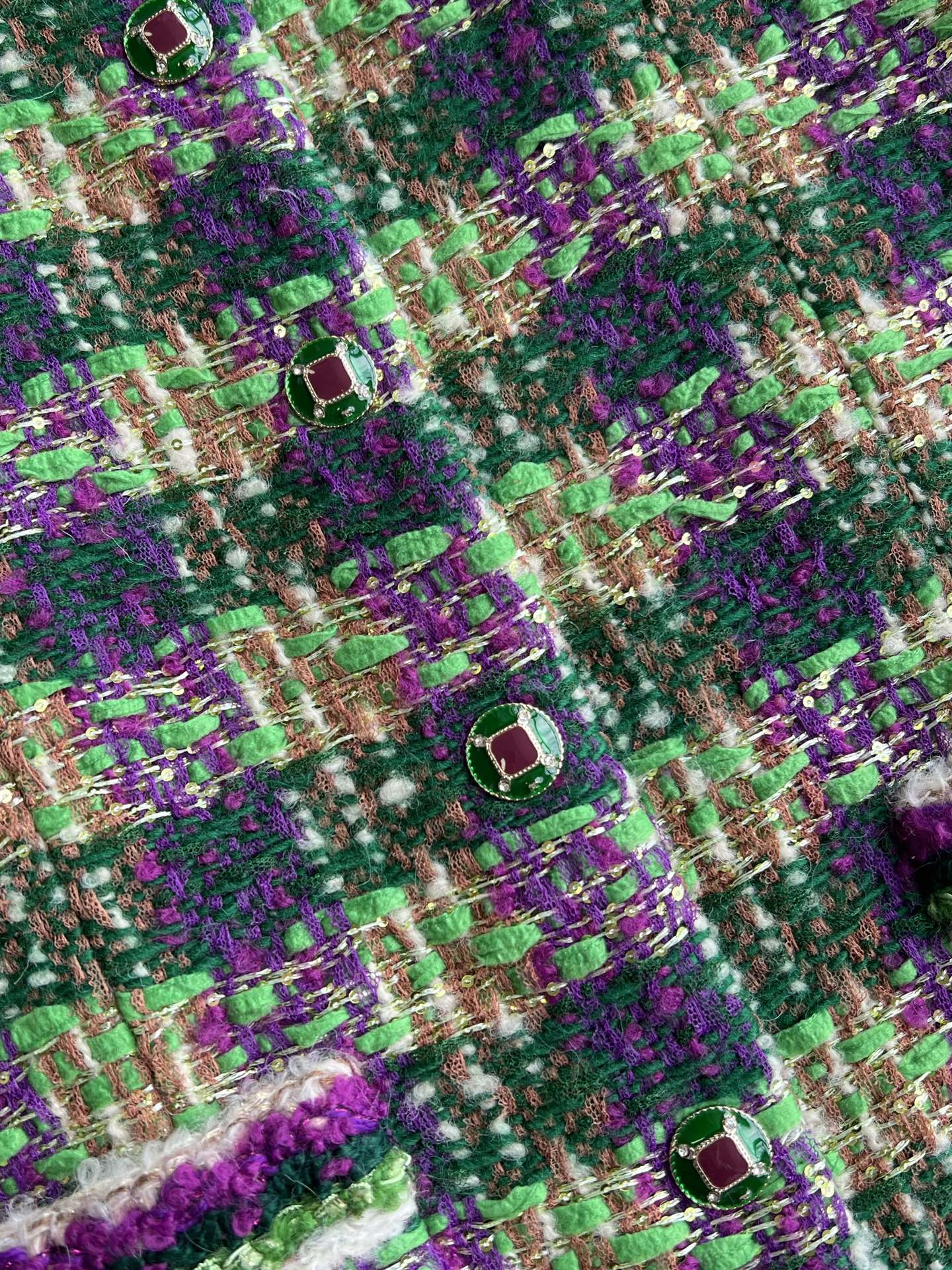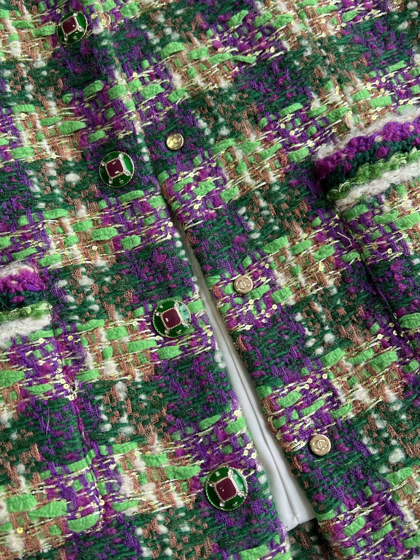 Chanel 2025 Plaid Tweed Vest Jacket Green Wool Polyester 325377
