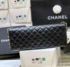 Chanel 24A MAXI Baguette Clutch Black Sheepskin 256043
