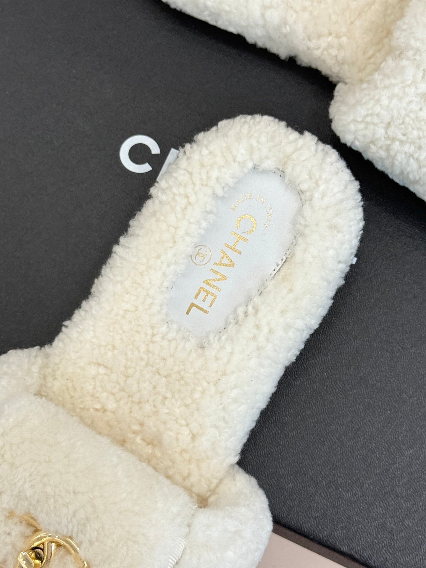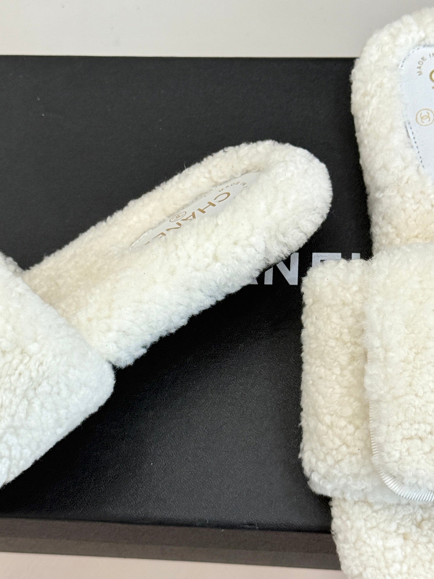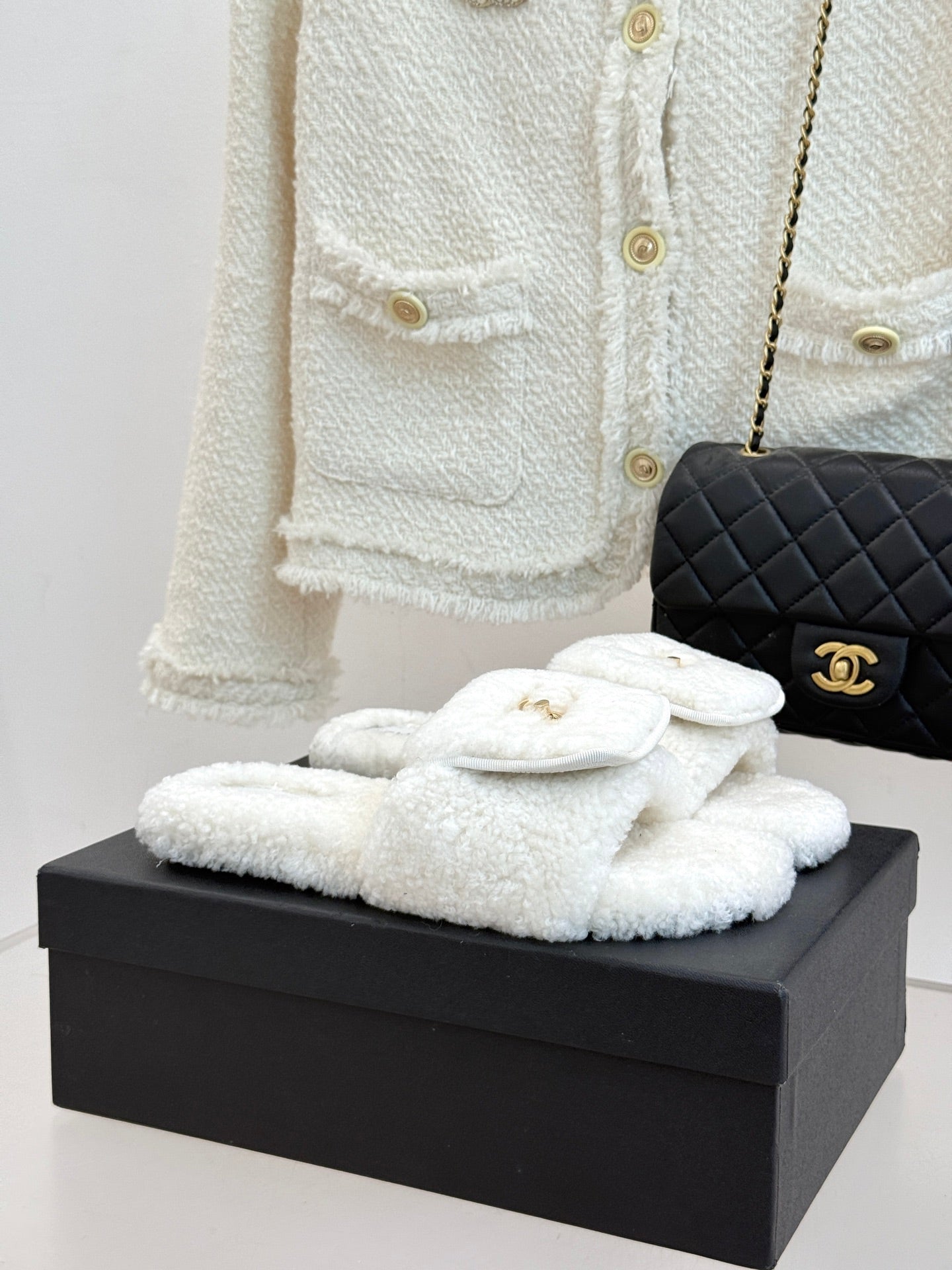 Chanel 25 Buckle Flip-up Thick-soled Slippers White Wool 465383