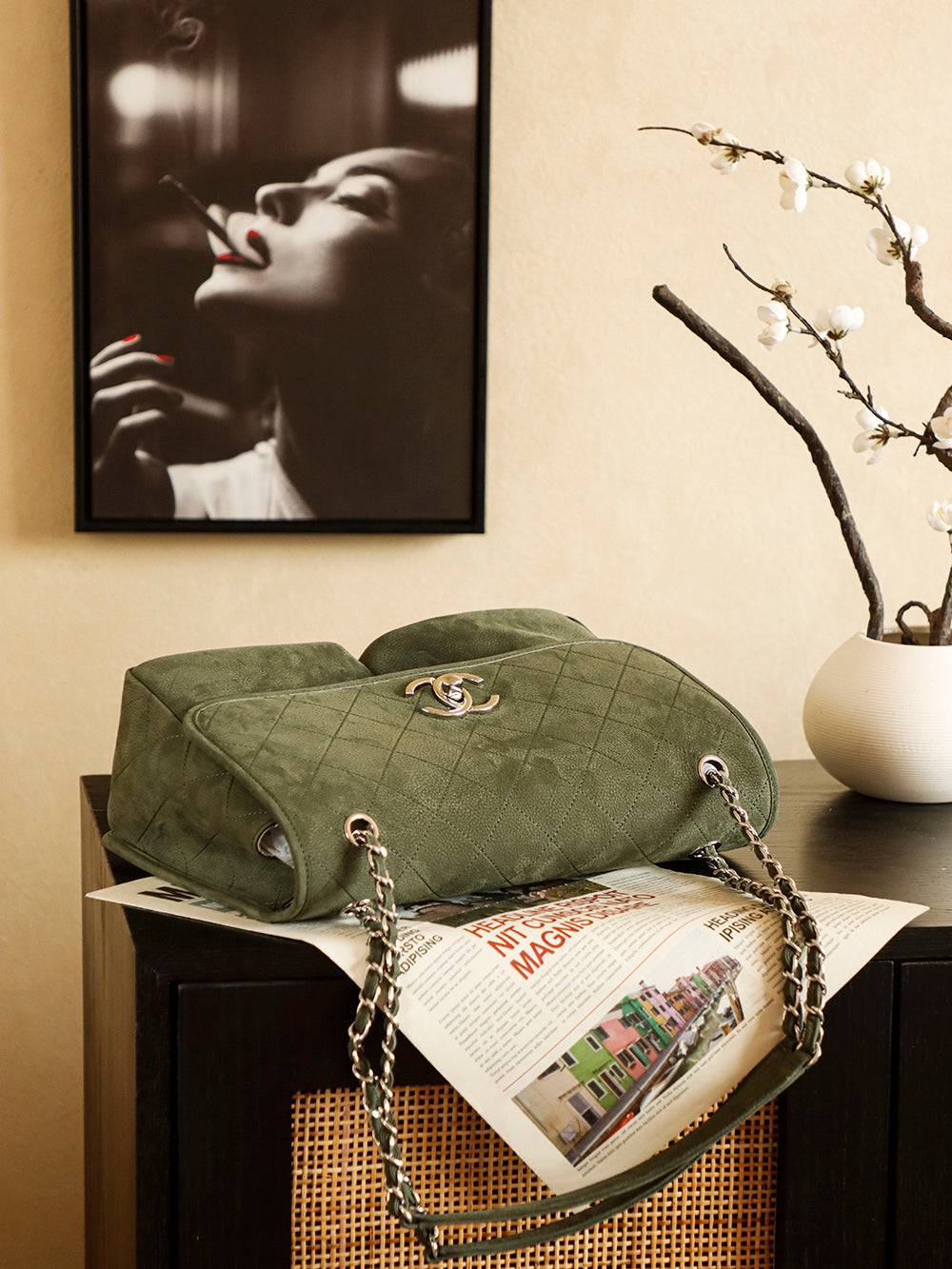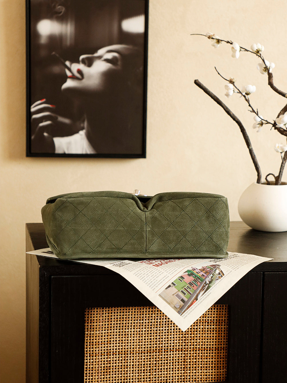 Chanel 25 Classic Single Flap Bag 35cm Green Leather 323478